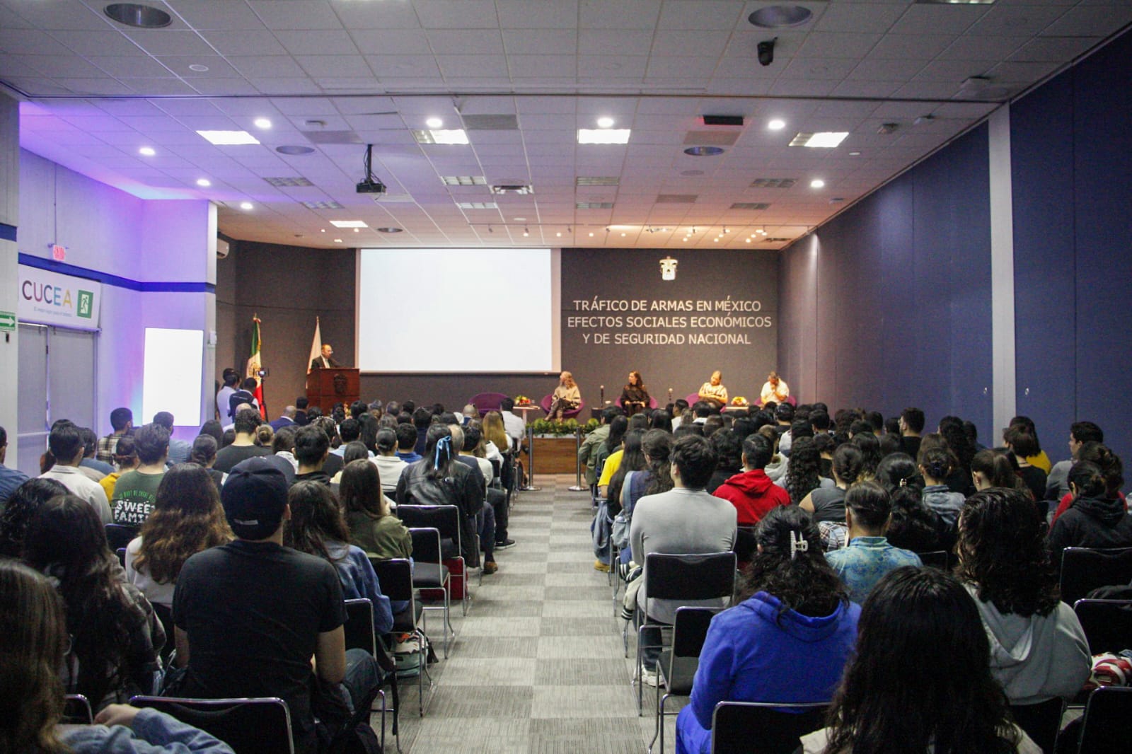 Al participar en el foro Tráfico de Armas en México: Efectos Sociales y Económicos, organizado por el Centro Universitario de Ciencias Económico Administrativas (CUCEA), destacó que un punto fundamental es colocar el tema de las armas y su impacto en la agenda pública, ya que suele permanecer ausente del debate.