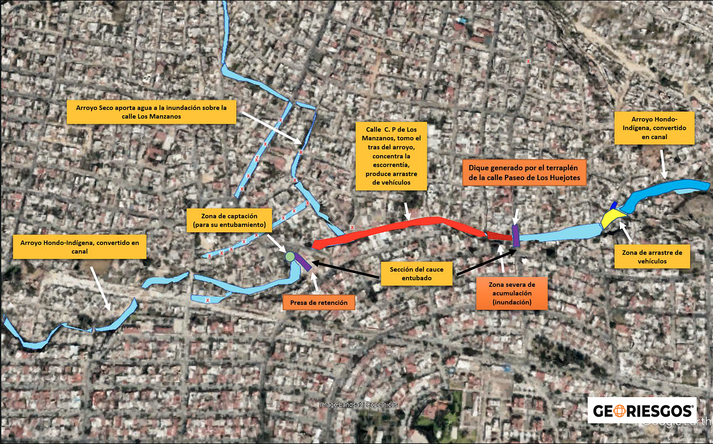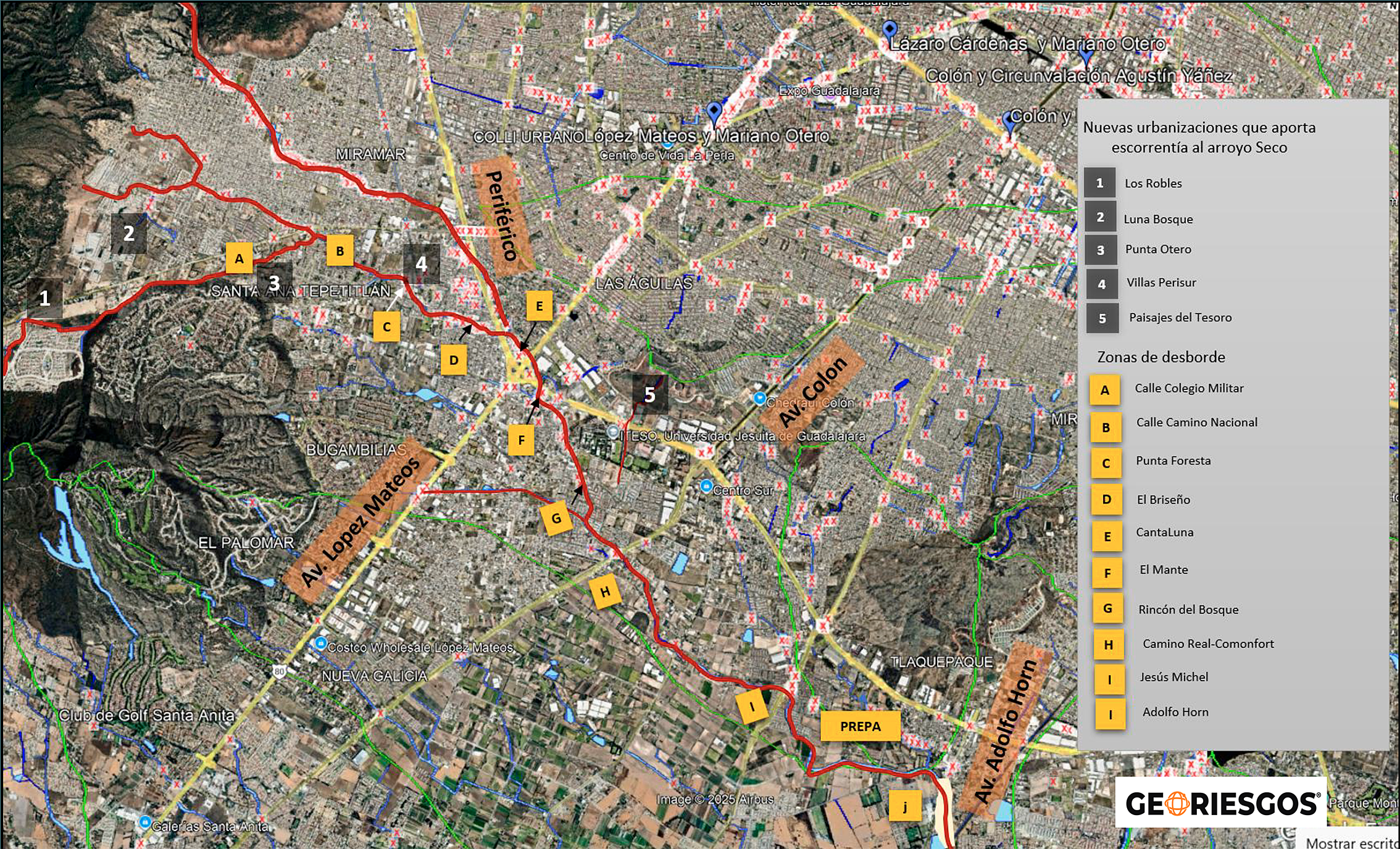 Puntualizó que las recientes inundaciones provocadas por los desbordamientos del Arroyo Seco, en Tlajomulco, y del Arroyo Hondo, que es el canal que cruza por La Martinica, en Zapopan, en dos ocasiones, son un ejemplo de lo que causa la urbanización de zonas naturales en las partes altas de la ciudad, que impide la absorción natural del agua y provoca que ésta se acumule en mayor volumen y que vaya hacia abajo.