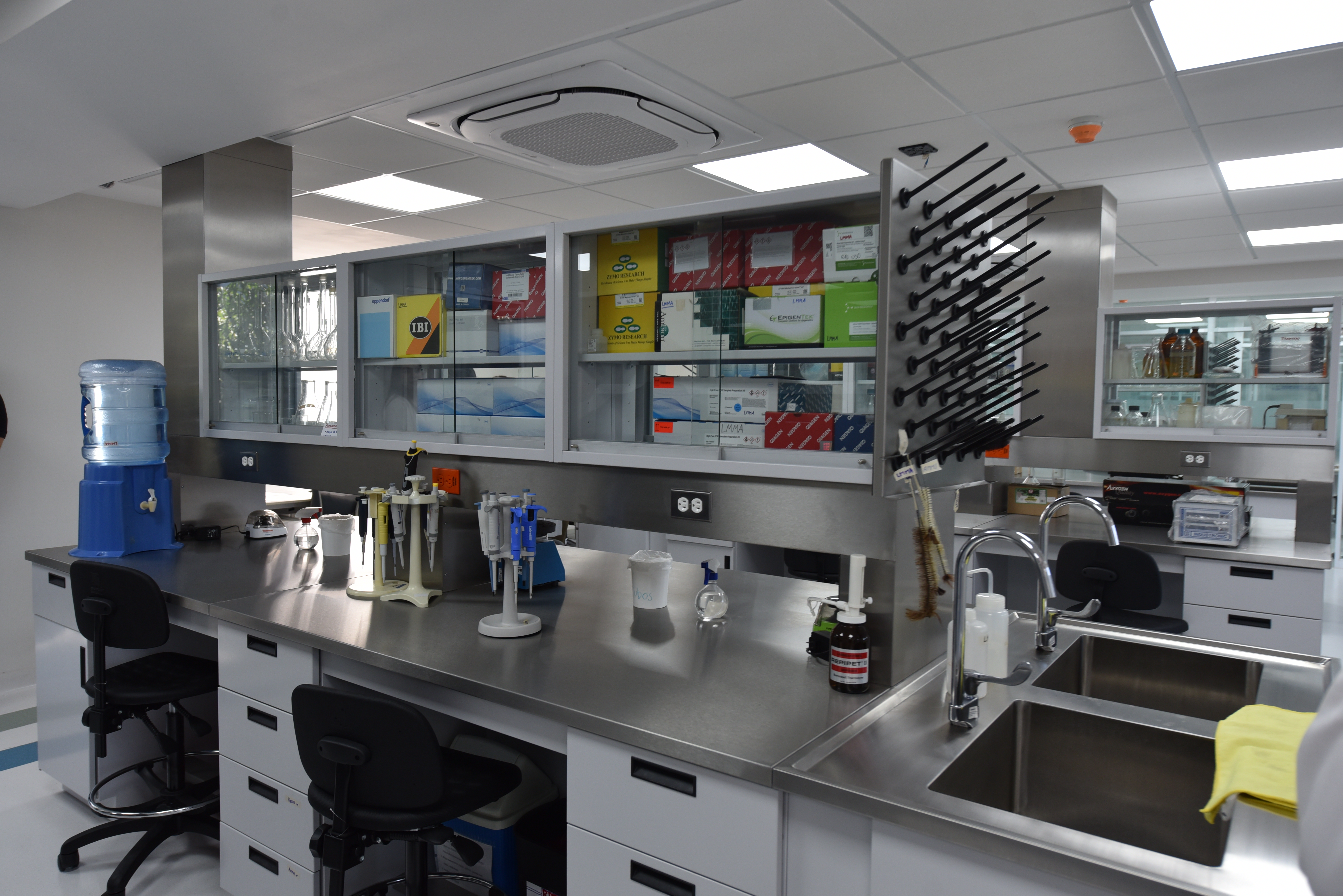 El equipamiento de las oficinas incluyó compra de sillas, mesas, escritorios, estantes y archiveros de por lo menos diez cubículos; mientras que en los laboratorios e institutos fueron remodeladas cinco islas, e insumos de laboratorio como matraces, pipetas, almacenes de refrigeración y campanas de vapor, favoreciendo la bioseguridad, la creación de experimentos y pruebas realizadas bajo los parámetros correspondientes.