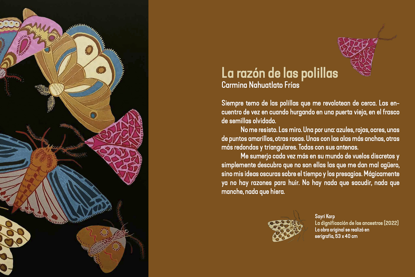 “Las imágenes plasmadas por Karp están colmadas de seres fantásticos que nos hacen reflexionar sobre nuestra condición humana y el vínculo directo que tenemos con la naturaleza y el medio ambiente”, agregó Duarte.