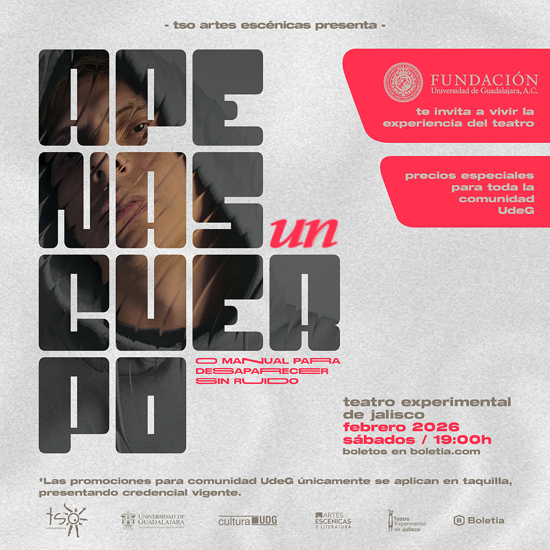 Para aquellos y aquellas amantes de las puestas en escena, el Teatro Experimental de Jalisco será el escenario de la obra Apenas un cuerpo. O manual para desaparecer sin ruido, dirigida y escrita por René González y que narra la historia de un hombre que espera un camión que tal vez nunca llegue; mientras aguarda, ordena los retazos de su soledad, el barrio, la casa vacía, el amor que la calle le negó. La cita para resolver estos enigmas, a la par del protagonista, es el próximo 14 de febrero, a las 19:00 horas.