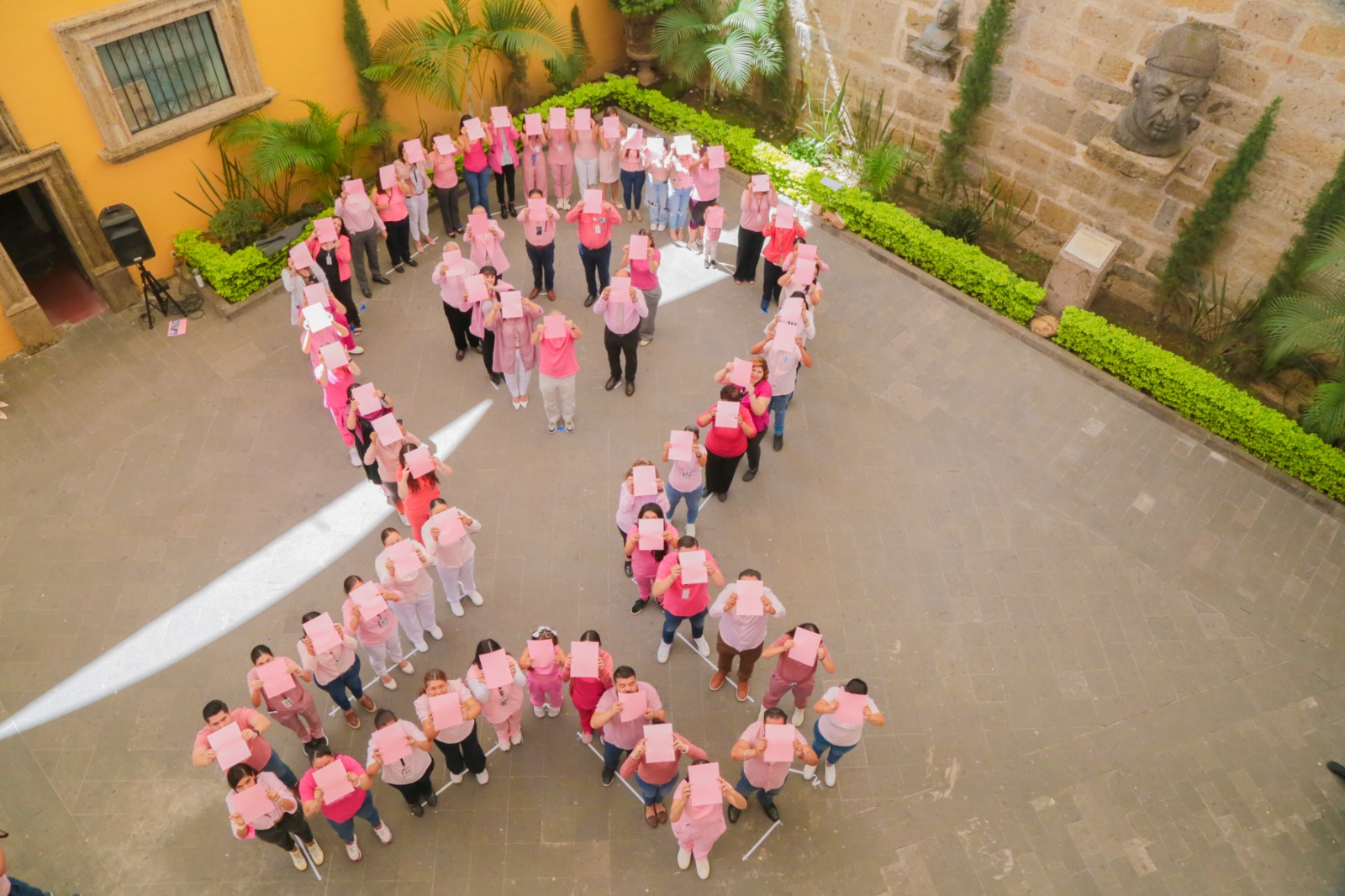 En los tres nosocomios todos sus integrantes se vistieron con ropa rosa conmemorativa para formar un lazo rosa humano de al menos 10 metros, que se pudo apreciar desde las alturas. El pasado 3 de octubre se realizó en el “Dr. Juan I. Menchaca”; el 15 en el “Fray Antonio Alcalde” y el 17 de octubre en el Hospital Civil de Oriente.