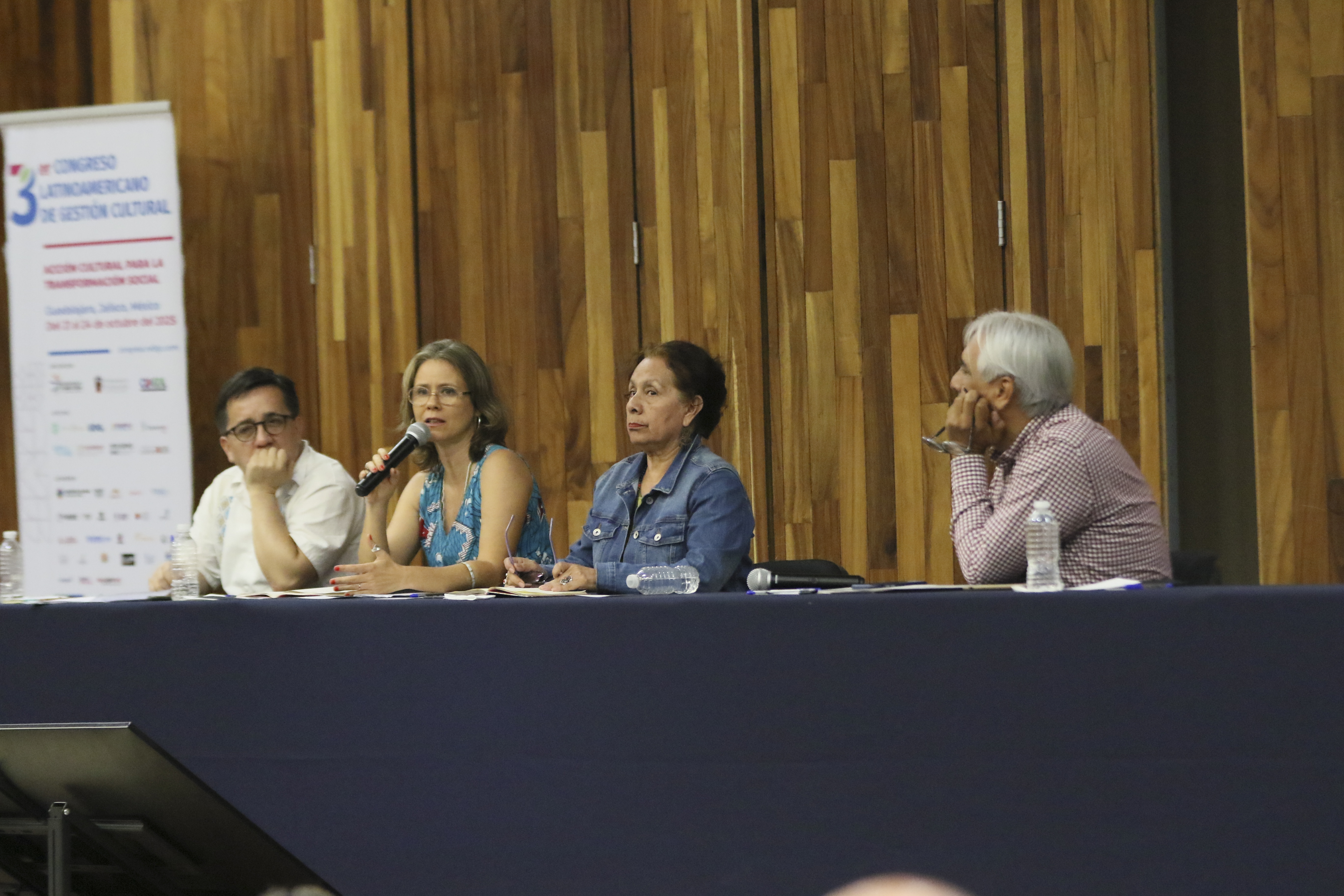 Después de la conferencia inaugural, los gestores culturales Roberto Guerra Veas de Chile, Luana Vilutis de Brasil y la antropóloga mexicana Lucina Jiménez analizaron los retos y la importancia de la gestión cultural en distintos entornos de la región.
