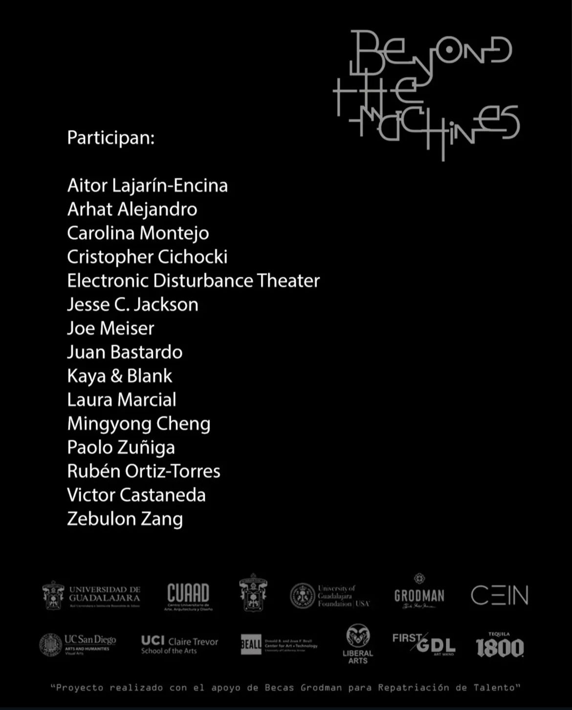 Como resultado del proyecto de actividades “Más allá de las máquinas”, impulsado por la Fundación Grodman, bajo el liderazgo del artista y académico Juan Bastardo del Centro Universitario de Arte, Arquitectura y Diseño (CUAAD), y en colaboración con el artista Enrique Nuño, y en el que participaron más de 15 artistas –algunos alumnos del CUAAD, otros de talla nacional e internacional–, se llevará a cabo la presentación de diversas creaciones artísticas en la muestra Beyond the machines / Más allá de las máquinas.