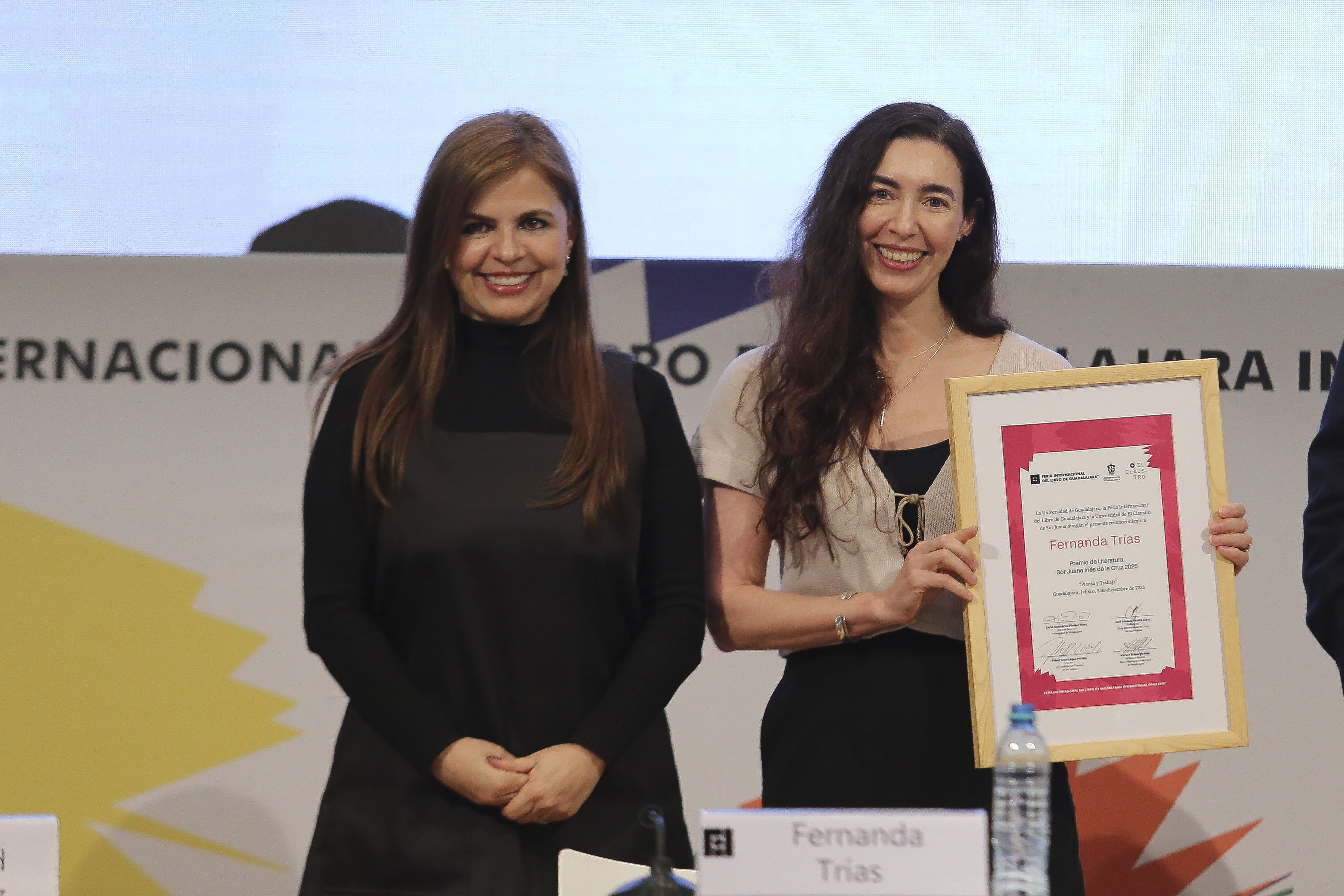“Este premio es uno de los más solicitados por la FIL, y gracias a la Universidad del Claustro de Sor Juana hemos podido lograrlo, y de quien agradezco siempre la complicidad. Sigamos planeando la creación de las mujeres y su voz, rica y reconocida, donde su mirada convoca atmósferas e instantes. La obra de Fernanda es lúcida, poética y profundamente humana, por lo que impacta en el mundo contemporáneo, colocando a la literatura uruguaya en el centro de la conversación”, declaró.