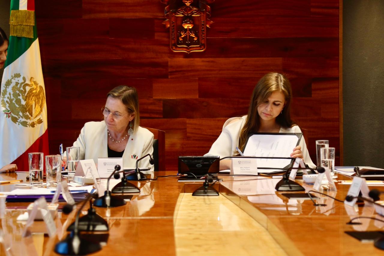 Por ello, este viernes la Rectora General de la UdeG, maestra Karla Planter Pérez y la embajadora de Francia en México, Delphine Borione, firmaron un convenio específico con la Embajada de Francia para llevar a cabo dicho proyecto que abarca la presencia de la diáspora francesa, y también renovar el acuerdo de colaboración que existe desde 2001 entre esta Casa de Estudio y el país Europeo.