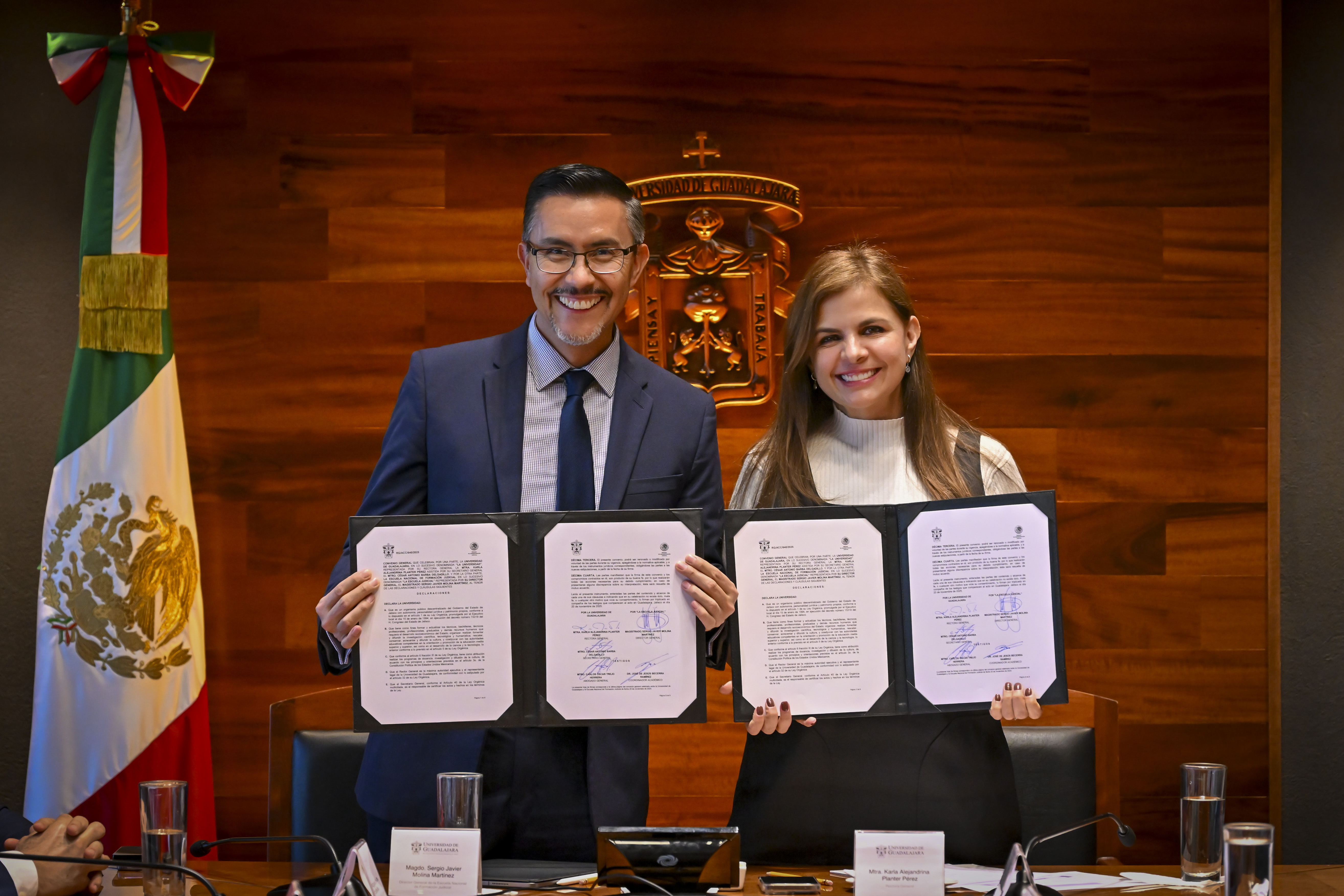 La Universidad de Guadalajara (UdeG) se convirtió en la primera institución educativa de México en firmar un convenio de colaboración con la Escuela Nacional de Formación Judicial, con lo que se busca afianzar el trabajo entre ambas instituciones y generar las condiciones para impulsar la cultura e investigación en la impartición de justicia.