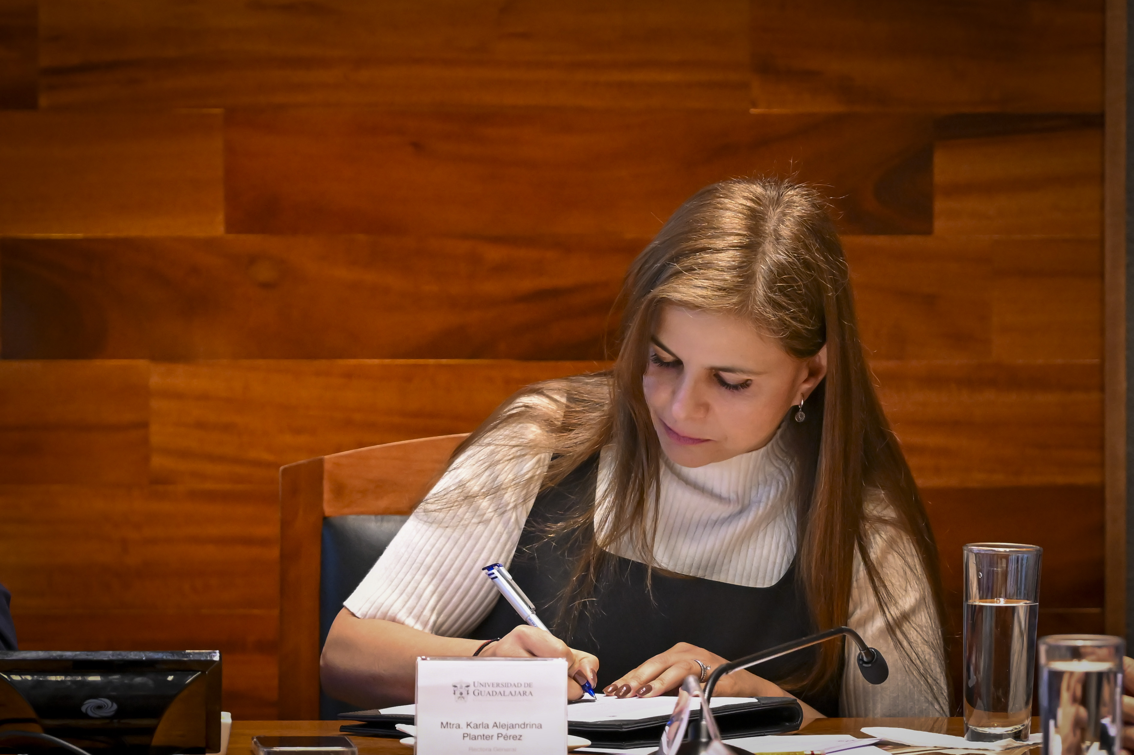 La Rectora General de la UdeG, maestra Karla Planter, celebró el compromiso entre ambas instituciones con la firma de este convenio, y resaltó la visión de “puertas abiertas” de la Escuela Nacional de Formación Judicial al acercar la educación y cultura legal y promover la actualización constante.