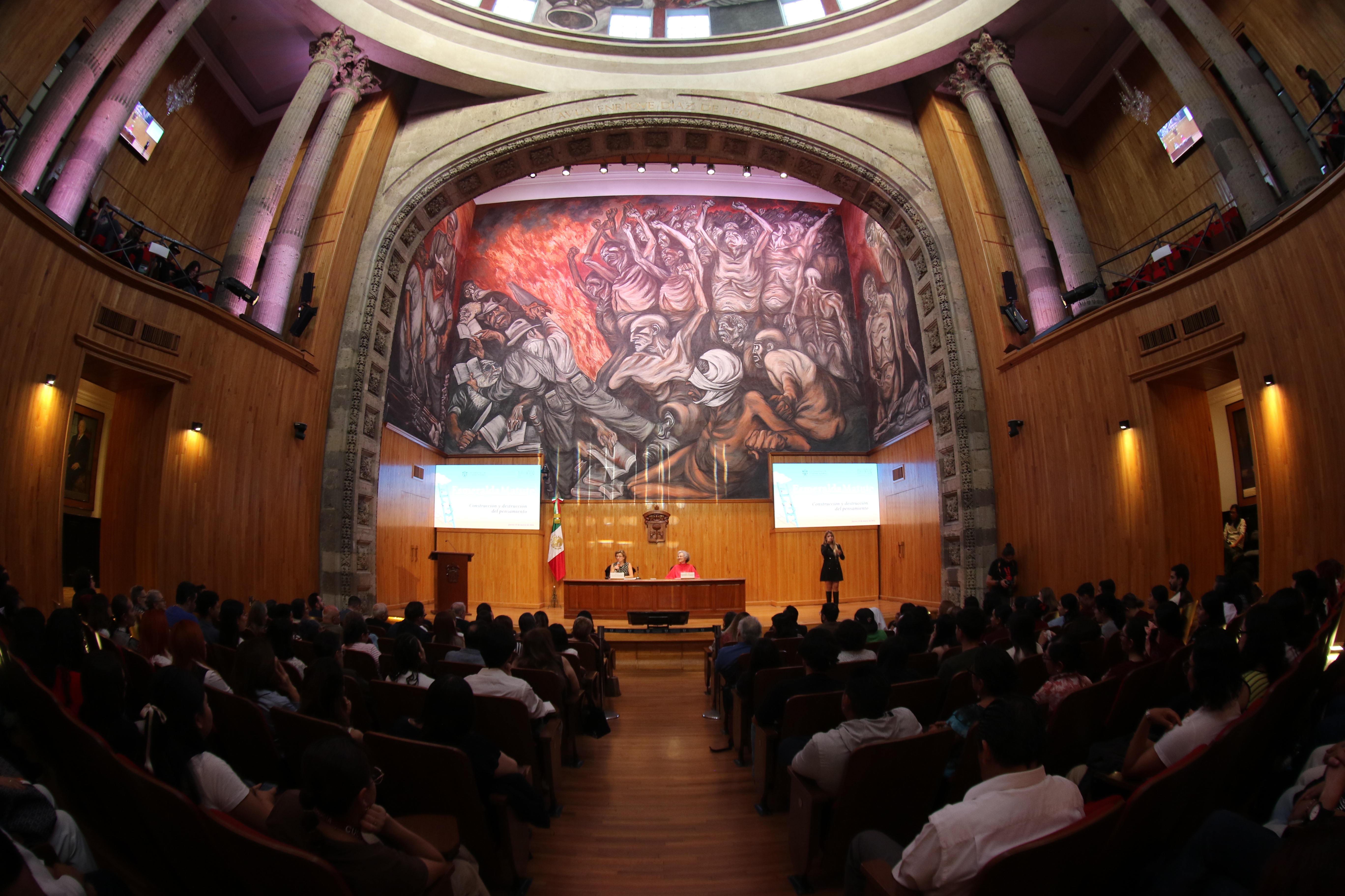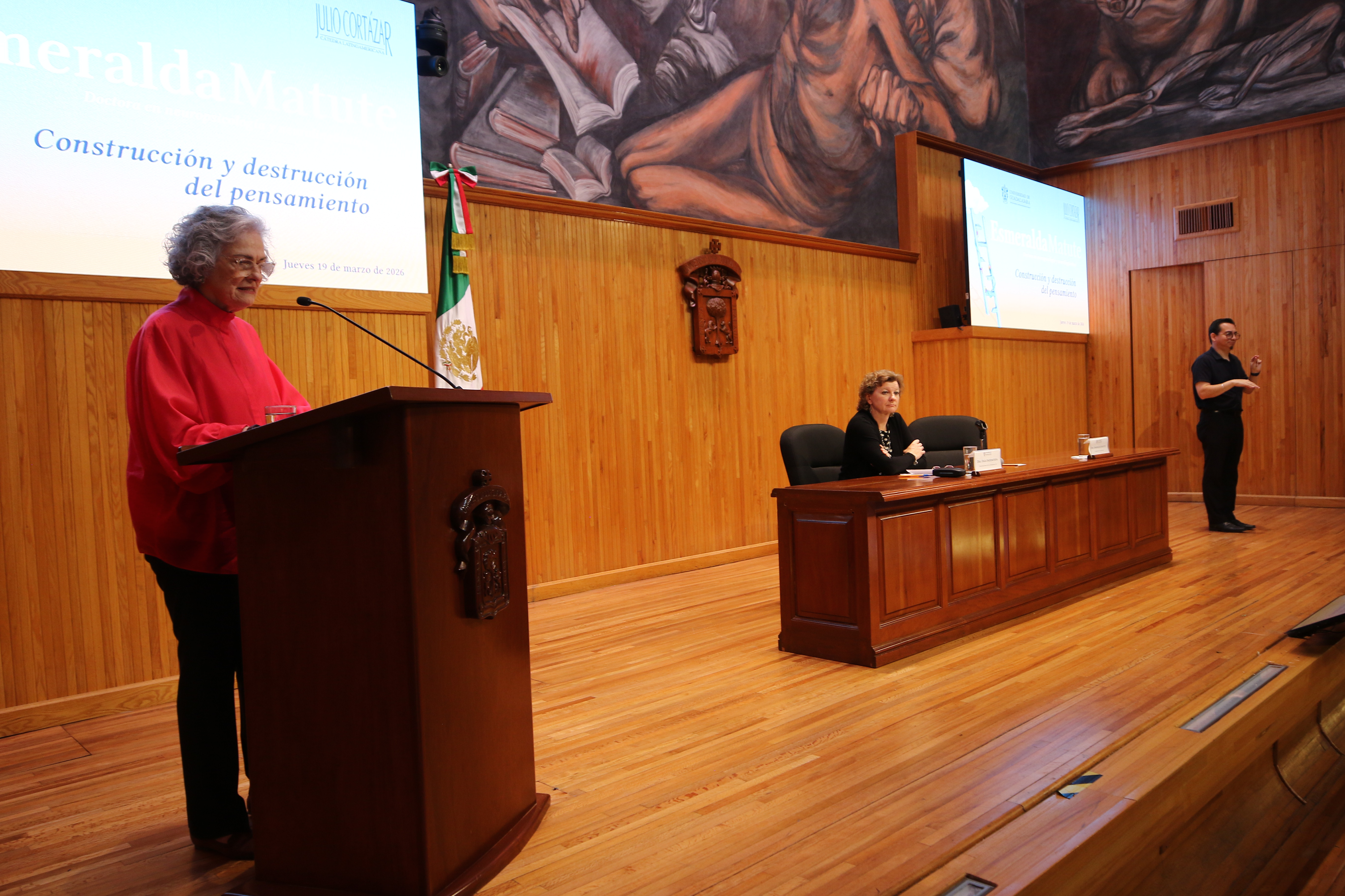 La doctora Esmeralda Matute Villaseñor, Directora del Laboratorio de Neuropsicología y Neurolingüística del Instituto de Neurociencias y del Departamento de Estudios en Educación de la UdeG, dictó la conferencia magistral “Construcción y deconstrucción del pensamiento”, en el Paraninfo Enrique Díaz de León y en el marco de la Cátedra Latinoamericana “Julio Cortázar”, organizada por el Centro Universitario de Ciencias Sociales y Humanidades (CUCSH).