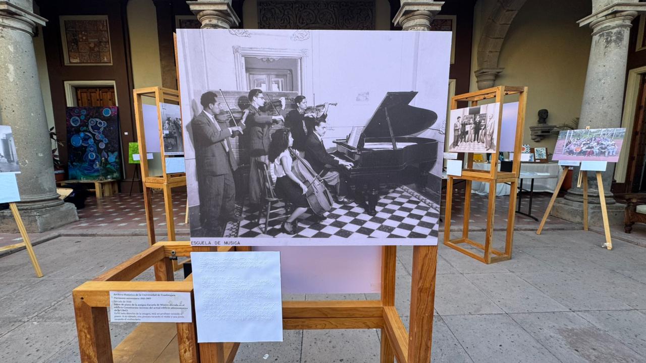 Se trató de una instalación de 26 fotografías de momentos de la vida universitaria que evocan la participación de gente que ha hecho la historia de la UdeG, entre 1925 y 2025.