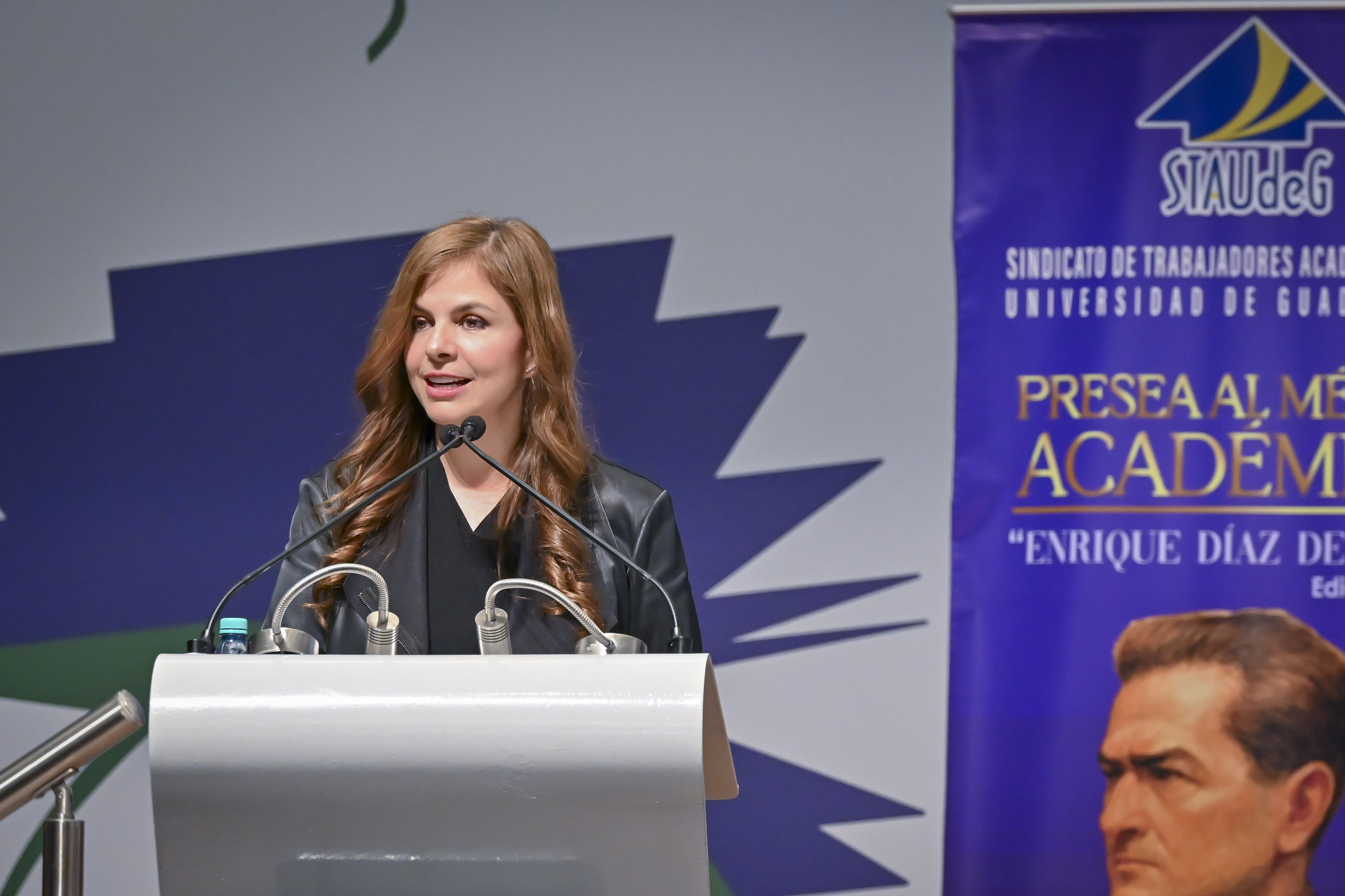La Secretaria General del Sindicato de Trabajadores Académicos de la UdeG, maestra Natalia Juárez Miranda, reconoció el trabajo de las y los galardonados para que esta Casa de Estudio mantenga la calidad que la caracteriza.