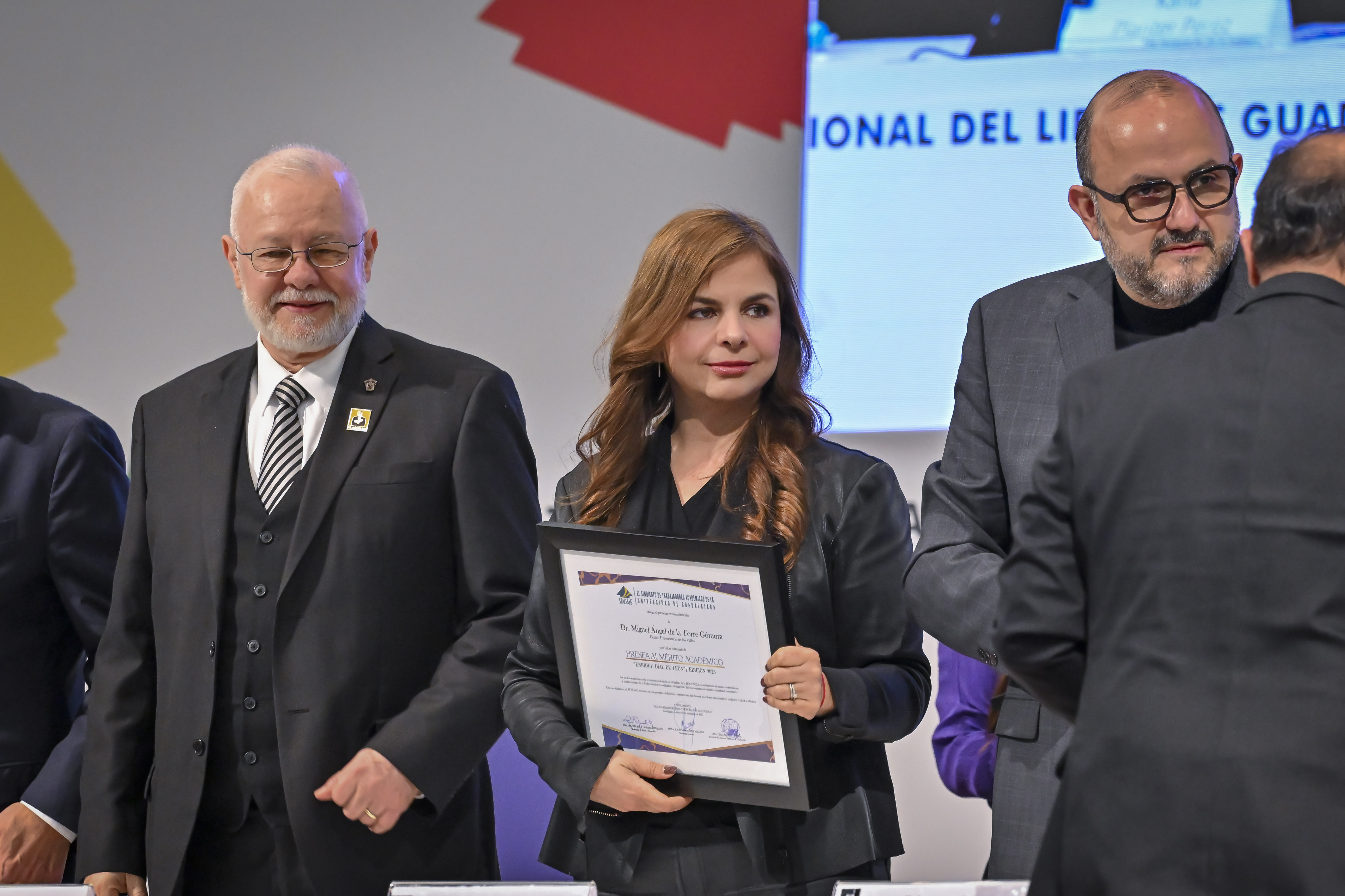 La Rectora General de la Universidad de Guadalajara, maestra Karla Planter Pérez, entregó la Presea al Mérito Académico a 26 universitarias y universitarios, y la primera presea especial “Raúl Padilla López” al doctor Ricardo Villanueva Lomelí, Exrector General de esta Casa de Estudio y Subsecretario de Educación Superior, de la Secretaría de Educación Pública federal.