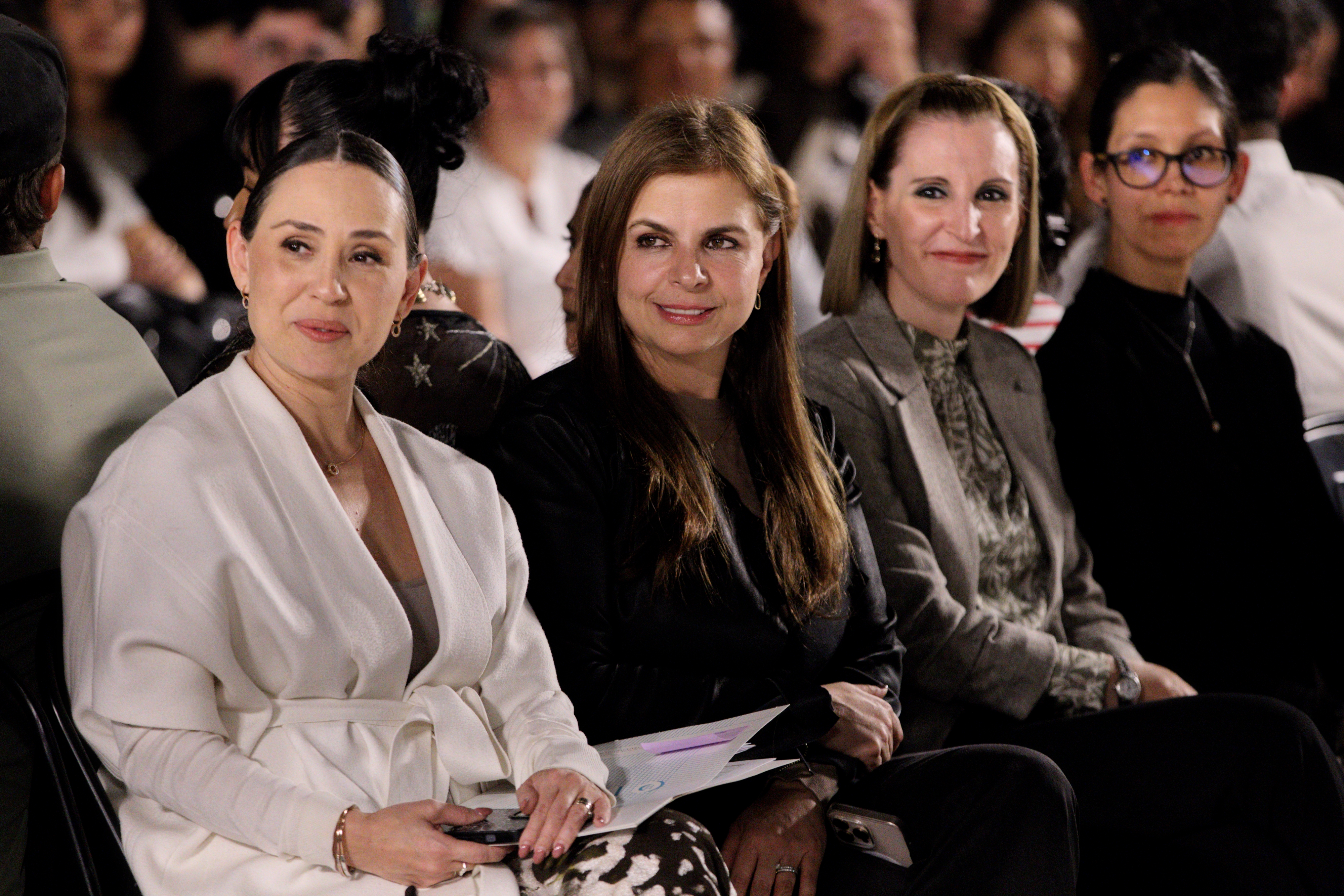 La Rectora General de la Universidad de Guadalajara (UdeG), Karla Planter Pérez, admiró las colecciones diseñadas y desfiladas por los propios estudiantes.