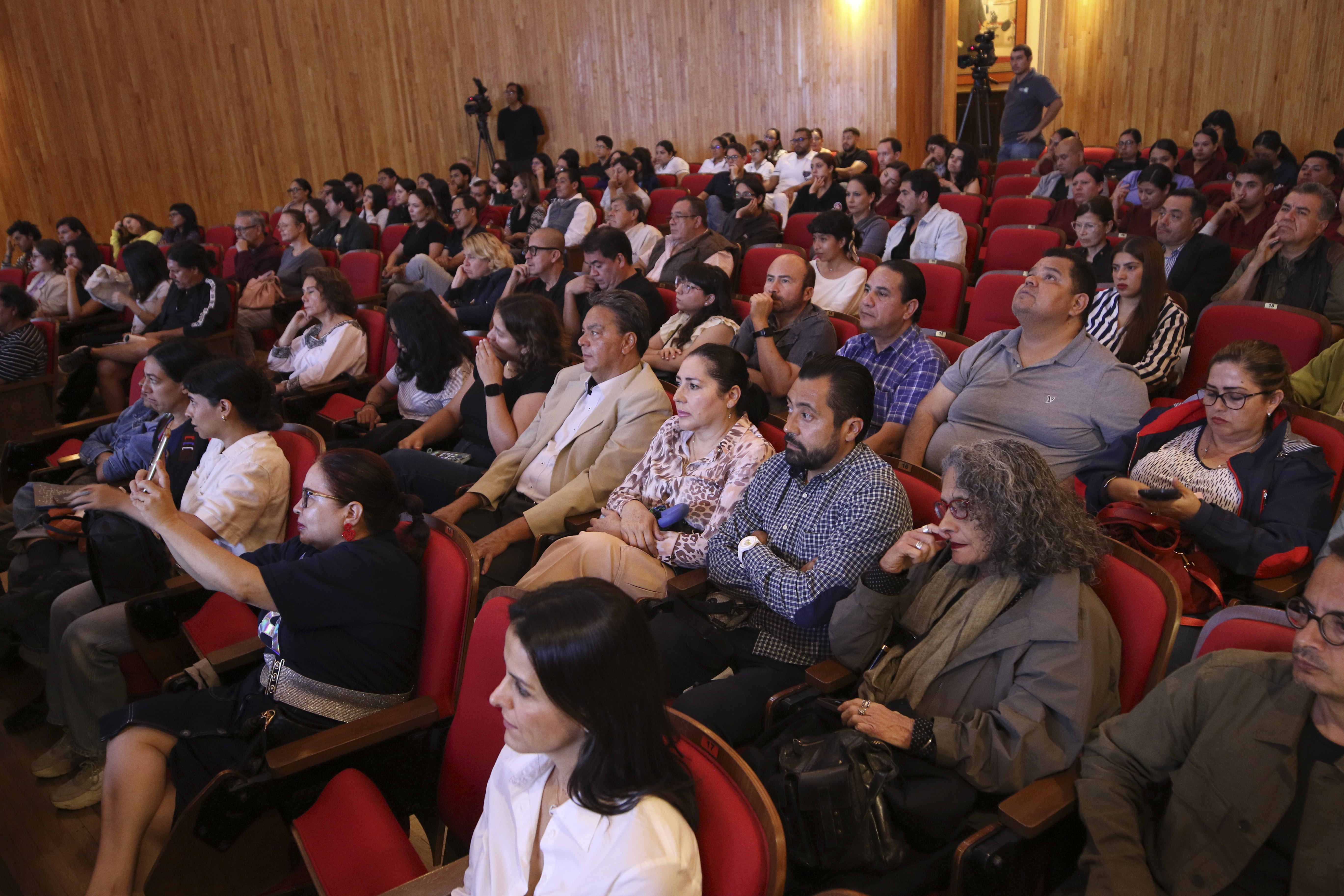 Decenas de personas se dieron cita en el Paraninfo Enrique Díaz de León para escuchar al artista conceptual uruguayo Luis Camnitzer en la Cátedra Latinoamericana "Julio Cortázar".