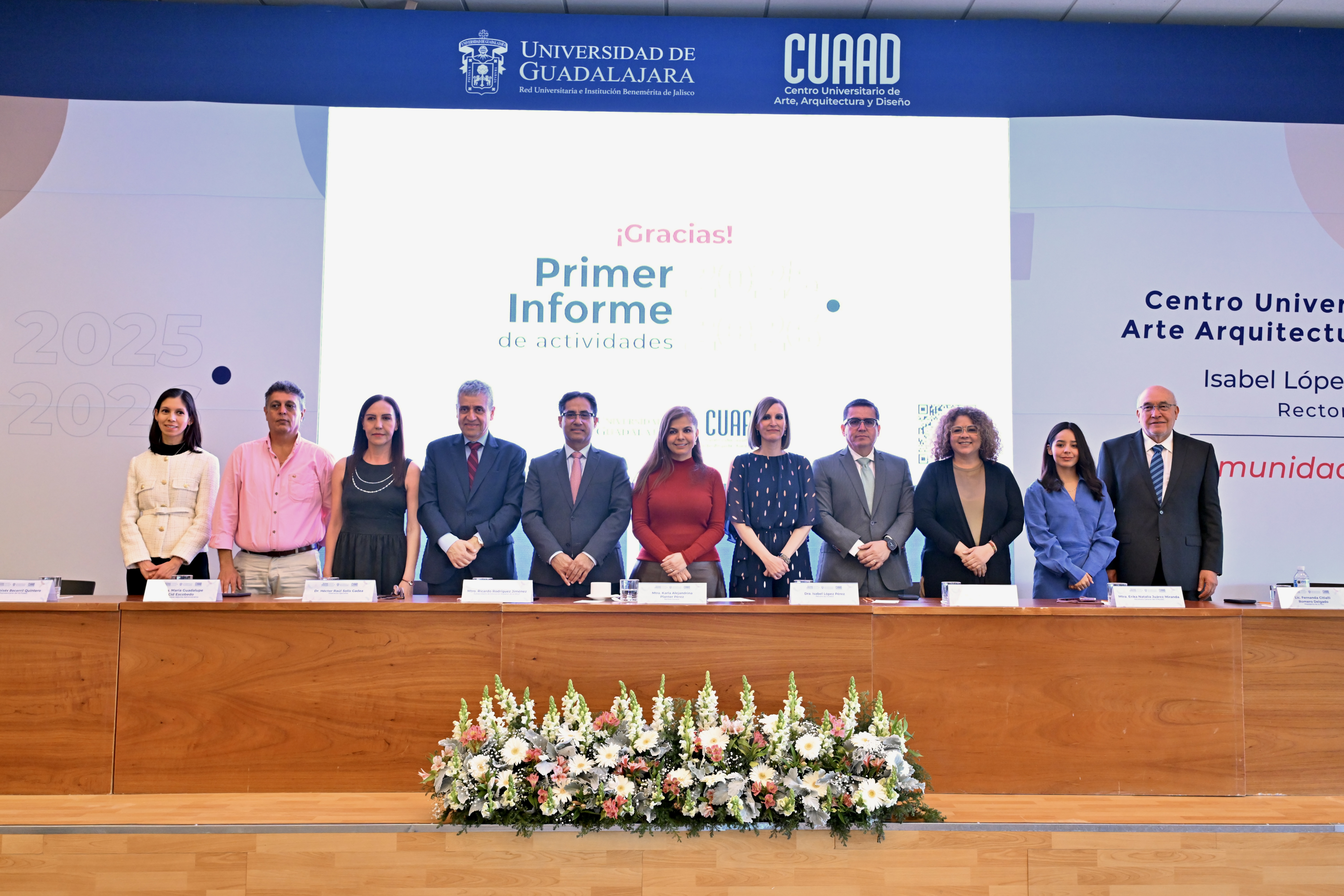 Con el fin de compartir las metas y logros alcanzados durante este año, la Rectora del Centro Universitario de Arte, Arquitectura y Diseño (CUAAD) de la Universidad de Guadalajara (UdeG), doctora Isabel López Pérez, presentó su primer Informe de actividades ante la presencia de autoridades universitarias, municipales y su comunidad estudiantil.