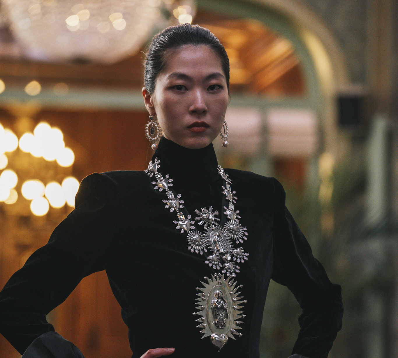 Bolívar precisó que los diez looks presentados en París fueron una muestra de una colección compuesta por un total de sesenta, y se trató de un preámbulo de celebraciones por el 25 aniversario de la firma “Gabriela Sánchez”, así como de su trayectoria profesional como creador en México.