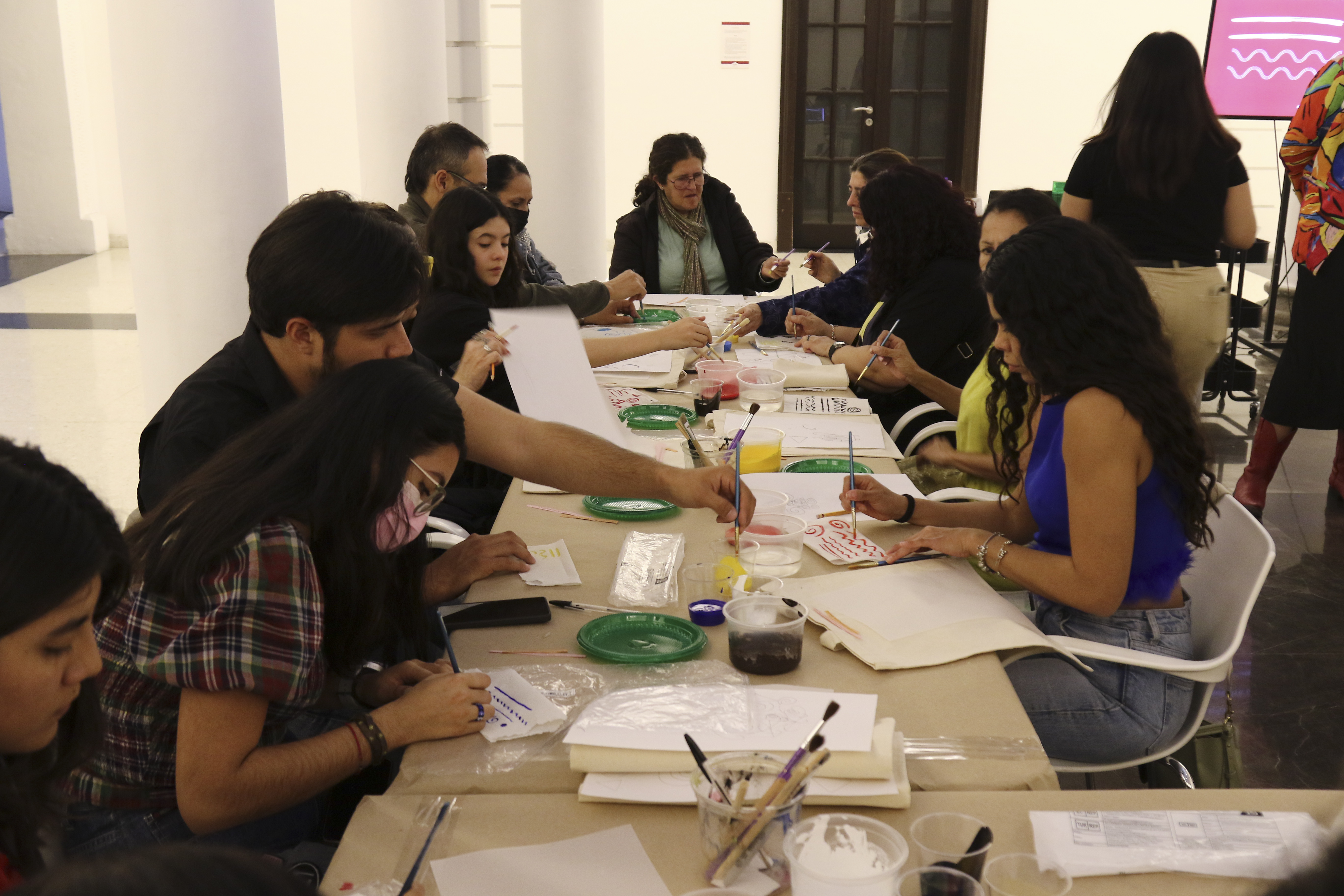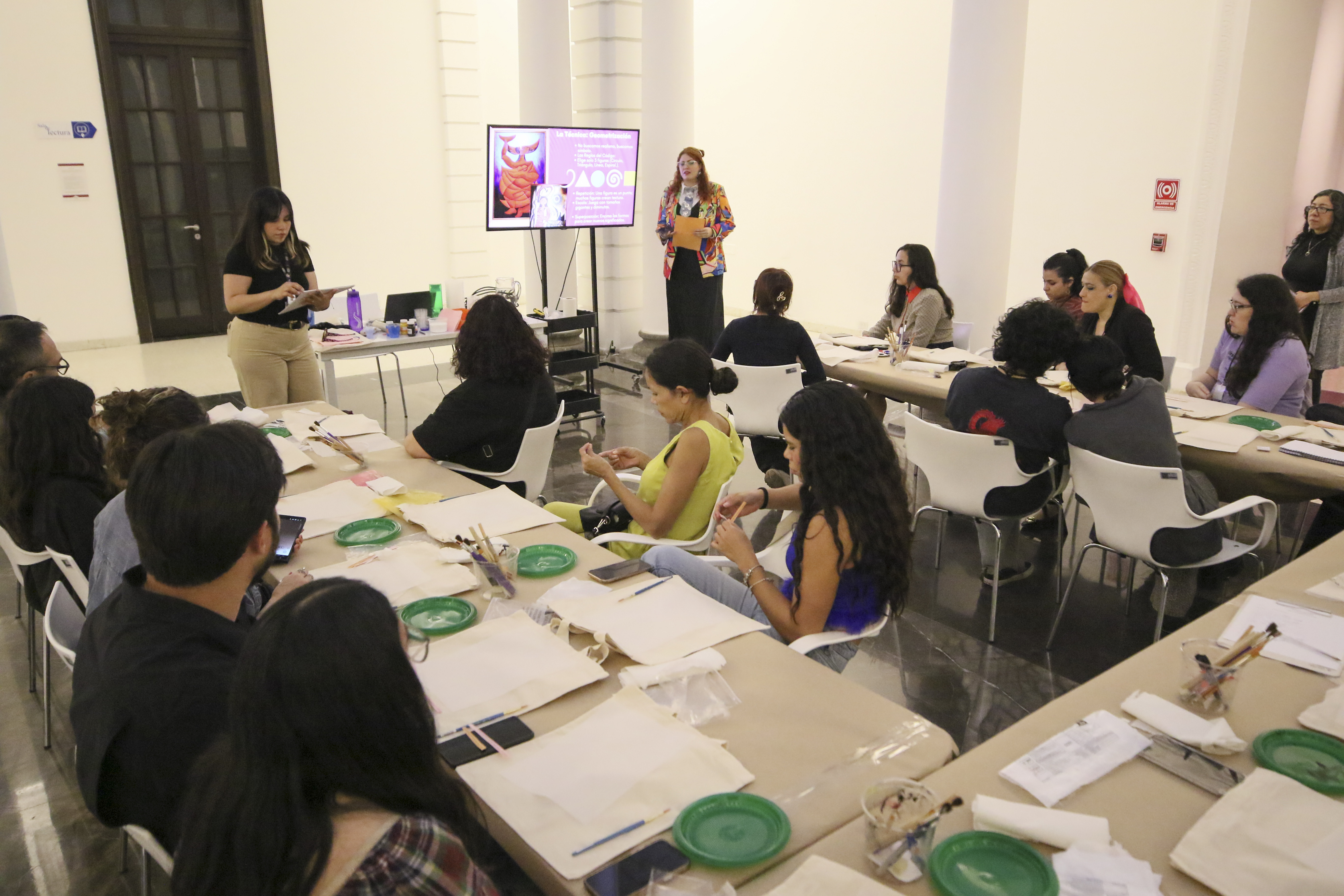 En el taller, realizado en el Museo de las Artes (MUSA) de la Universidad de Guadalajara, la creadora generó un diálogo entre el misticismo histórico y la abstracción moderna para que las y los participantes exploraran su identidad sin necesidad de conocimientos previos en las artes plásticas.