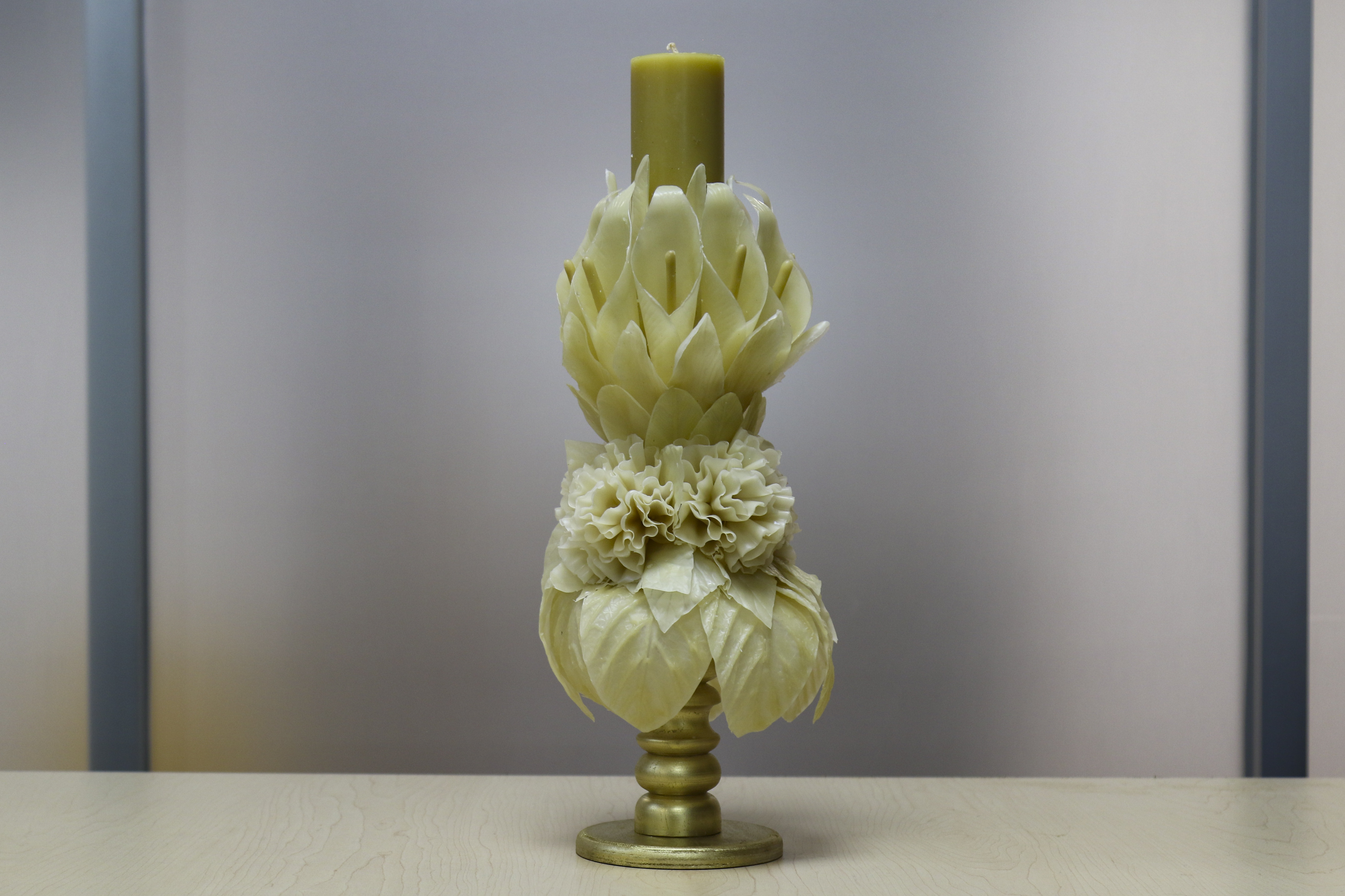 La técnica es un proceso muy elaborado que inicia con la cera natural de abeja proporcionada por apicultores. El material se “escarcha”, se desmorona y se blanquea al sol para obtener la pureza necesaria; posteriormente, mediante moldes sumergidos en cera y luego en agua, se crean las “escamas” o pétalos que, una vez tibios, se encorvan y ensamblan para formar figuras de todos los formatos y con todas las temáticas, detalló Salazar Gutiérrez.