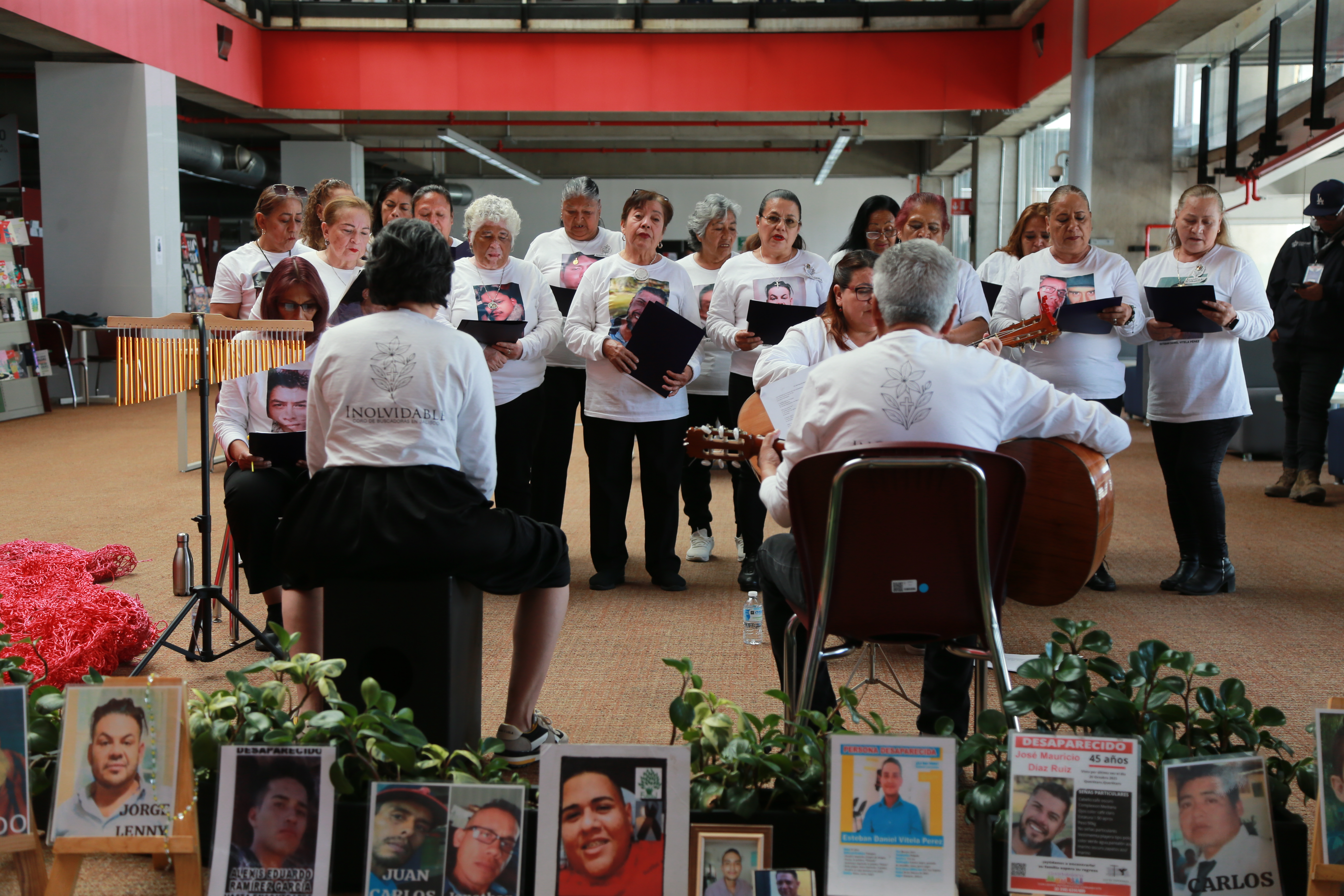 Durante la presentación, que incluyó un pase de lista, las integrantes del coro interpretaron diversas melodías en las que transforman el dolor en arte y mantienen firme su exigencia de verdad y justicia; con ellas evocan el amor, la nostalgia y la fortaleza que las impulsa a continuar con la búsqueda de sus familiares.