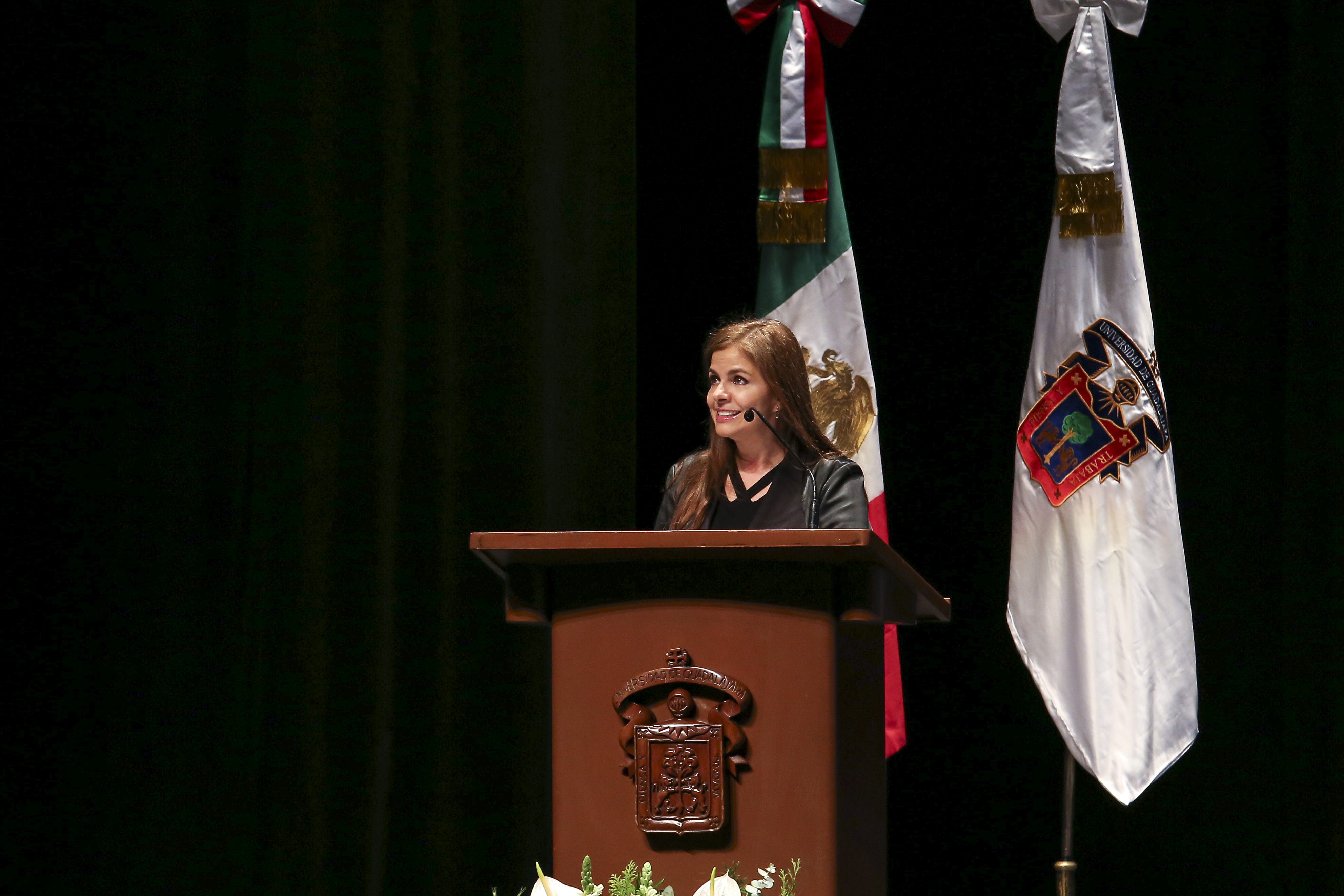 En su mensaje, la Rectora General de la Universidad de Guadalajara (UdeG), maestra Karla Planter Pérez, dijo que ésta es una manera de honrar el compromiso, talento y constancia de profesionistas de calidad, puesto que lo que ellos realicen incidirá no sólo en lo personal o familiar, sino que va a moldear el tipo de sociedad que tenemos y el tipo de sociedad que queremos.