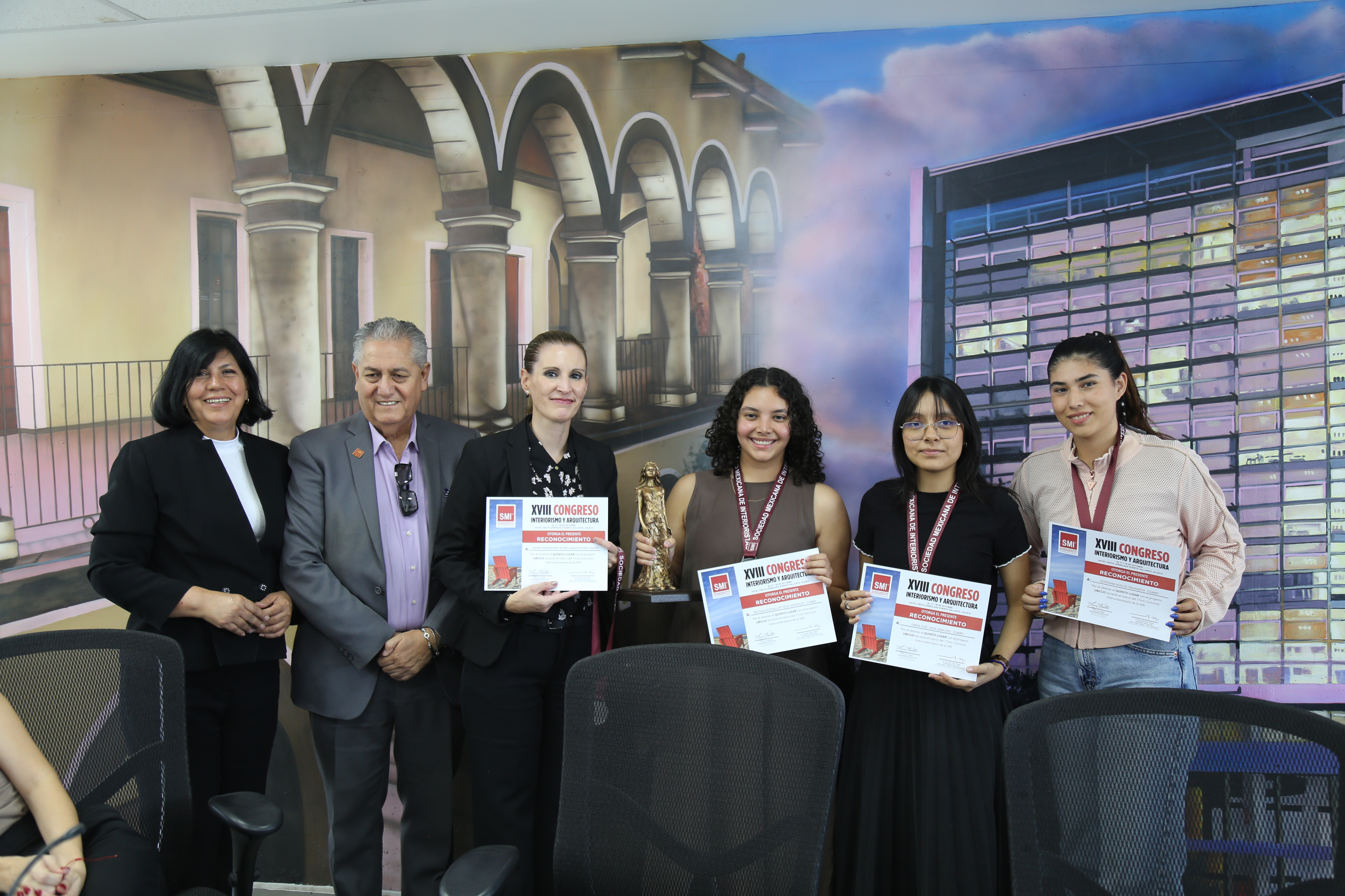 Estudiantes de la licenciatura en Diseño de Interiores y Ambientación del Centro Universitario de Arte, Arquitectura y Diseño (CUAAD) de la Universidad de Guadalajara (UdeG) fueron galardonados durante el XVIII Congreso Internacional de Interiorismo y Arquitectura, organizado por la Sociedad Mexicana de Interioristas (SMI).