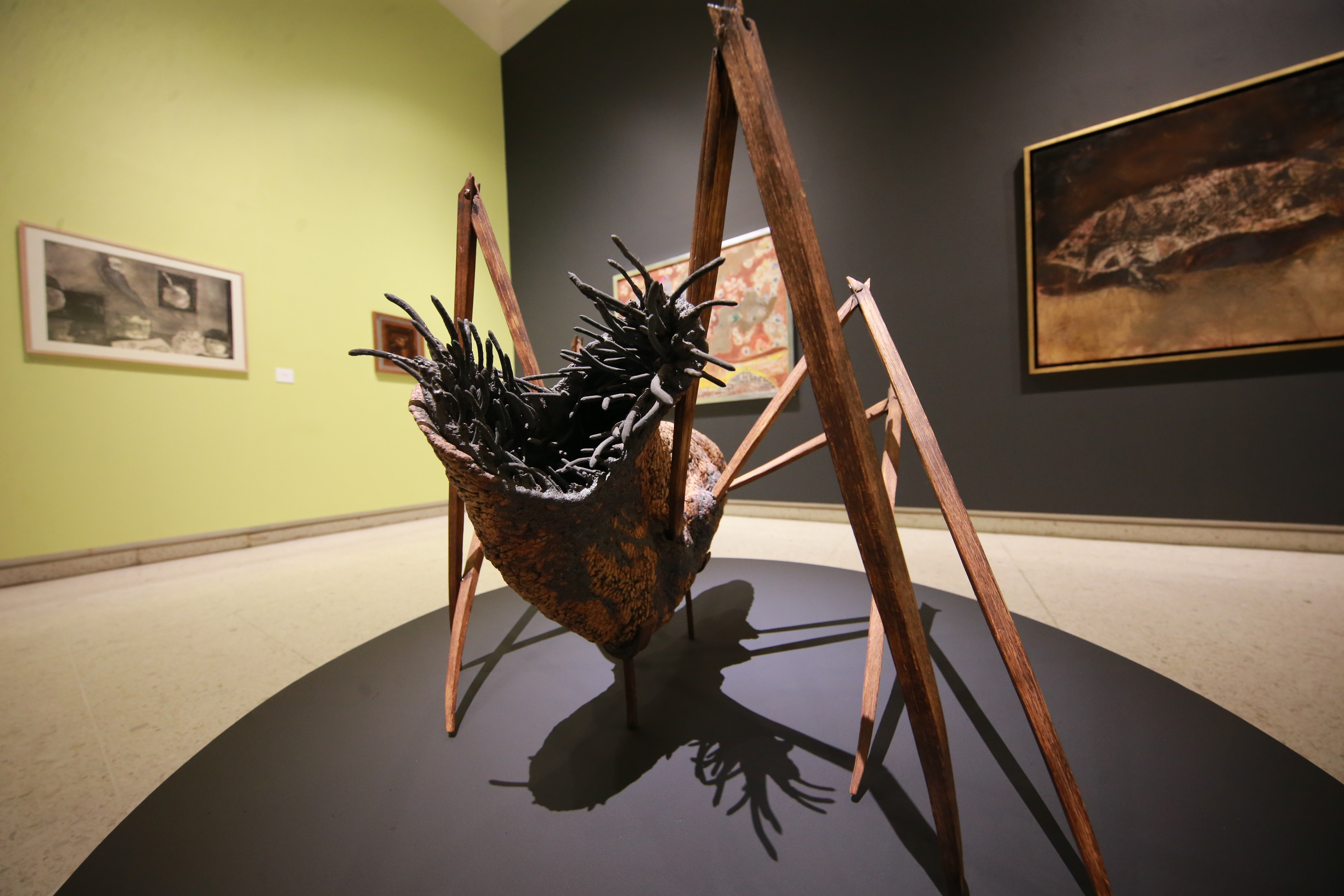 70 piezas entre collages, dibujo, escultura, estampas, fotografías, impresiones y pinturas en diversas técnicas componen “Fábulas fantásticas” que está dividida en tres líneas discursivas: lo insólito y cotidiano, la magia de los hechizos, el sentimiento de lo fantástico, distribuidas en cuatro salas del MUSA.