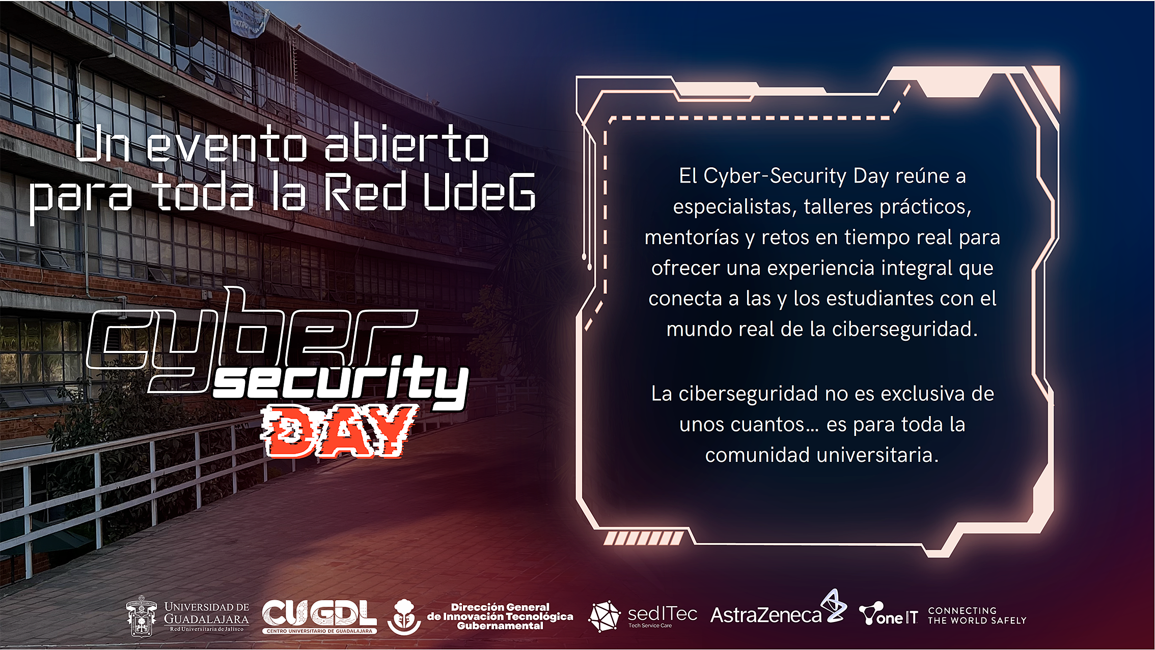 Con el objetivo de acercar la ciberseguridad a estudiantes y todo público, el Centro Universitario de Guadalajara (CUGuadalajara) anunció la realización de su primer Cybersecurity day, una actividad gratuita que reunirá a especialistas, empresas y autoridades para reflexionar sobre los retos actuales en el entorno digital.