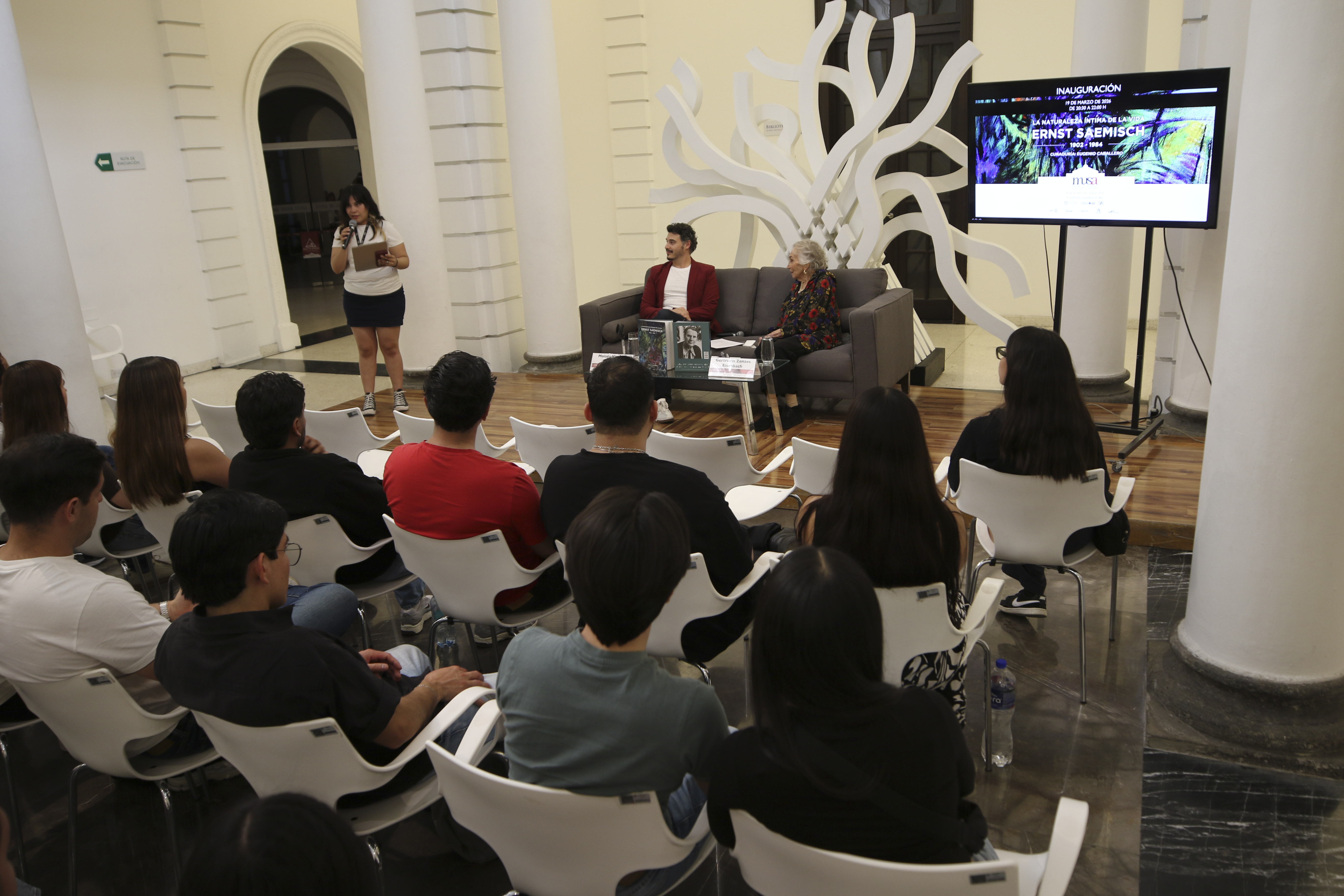 Con una voz suave pero firme, la señora Gertrudis Zenzes, viuda del pintor, escritor y periodista alemán, Ernest Saesmisch, encabezó la charla inaugural Ernst en la memoria de Gertrudis, llevada a cabo en el patio central del Museo de las Artes (MUSA) de la Universidad de Guadalajara. Esto previo a la inauguración de la exposición La naturaleza íntima de la vida. Ernest Saesmich (1902-1984).