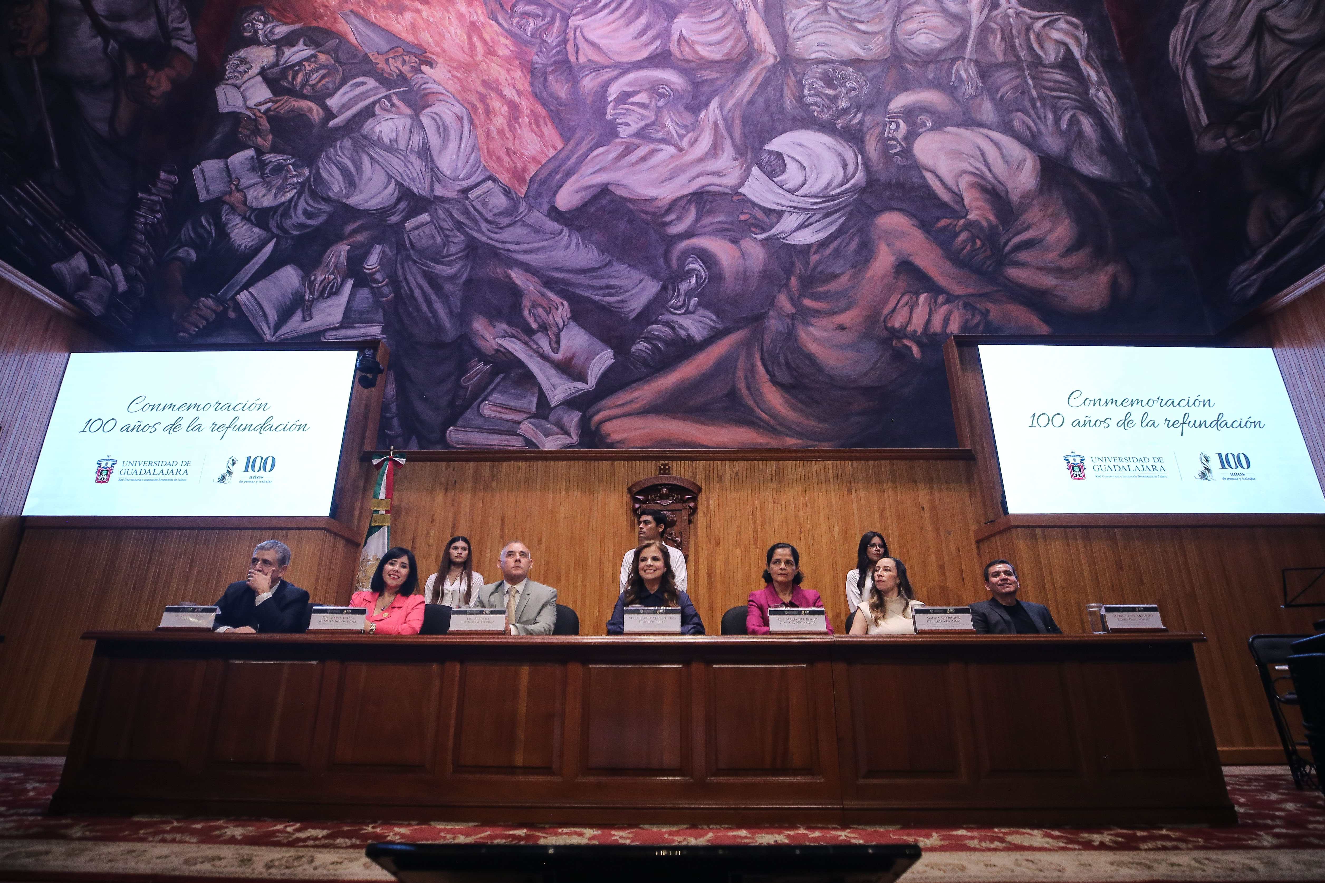 La Universidad de Guadalajara (UdeG) conmemoró el Centenario de su Refundación con una ceremonia en el Paraninfo Enrique Díaz de León, en la que se destacó el espíritu universitario y se reconoció a personajes que han marcado la historia de esta Casa de Estudio.