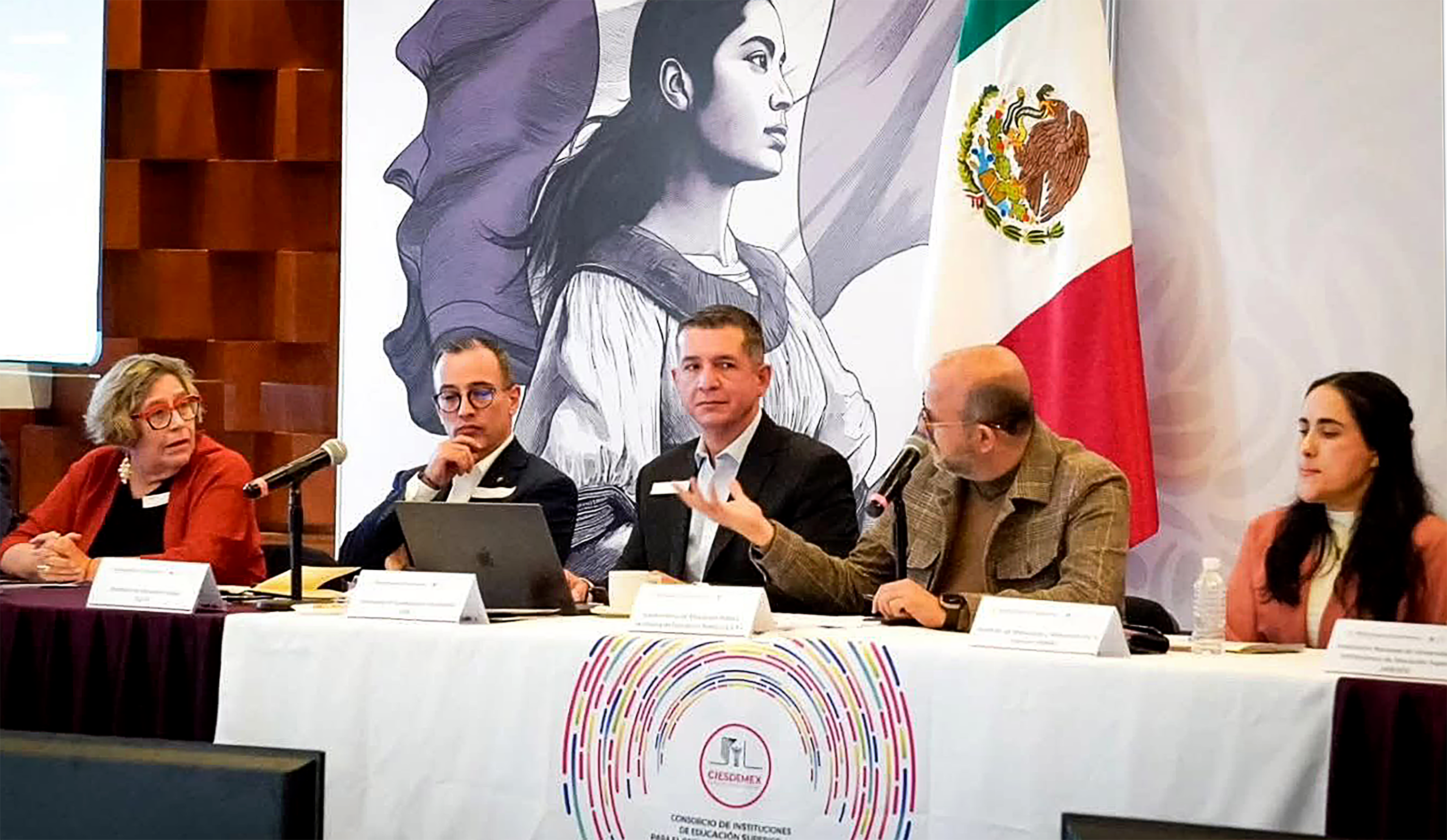 La reunión, fue presidida por Ricardo Villanueva Lomelí, Subsecretario de Educación Superior de la Secretaría de Educación Pública (SEP); así como por Tatiana Clouthier Carrillo, titular del Instituto de Mexicanas y Mexicanos en el Exterior (IMME) de la Secretaría de Relaciones Exteriores; Luis Gustavo Padilla Montes, presidente de la University of Guadalajara Foundation USA y Lilian Kravzov Appel, rectora de la Universidad Abierta y a Distancia de México, a nombre de las instituciones que conforman la Comisión Ejecutiva del Consorcio.