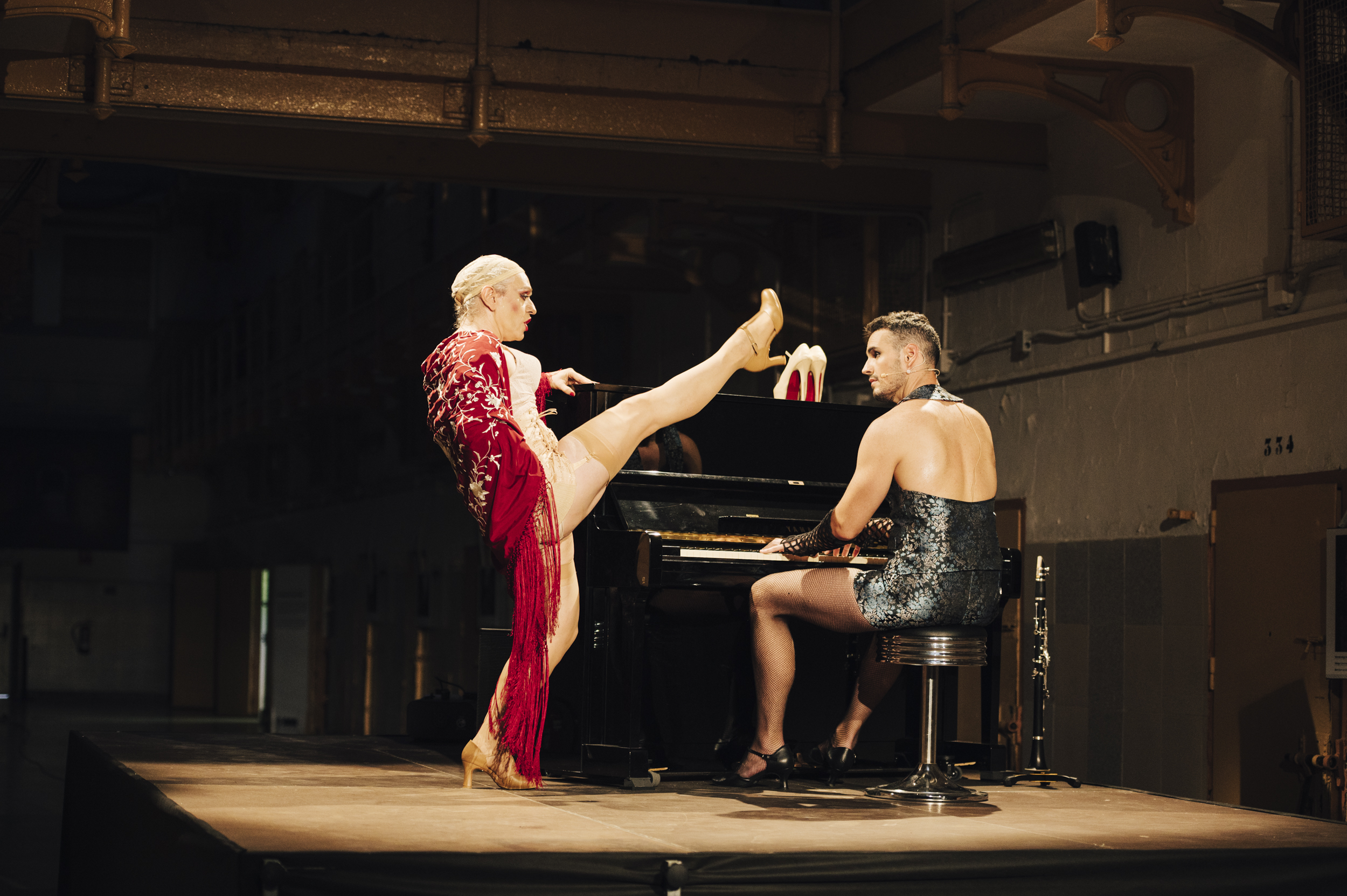 La pieza está protagonizada por Roberto G. Alonso, heredera de más de cien años de lentejuelas, tacones y plumas; acompañada de Jazmine Verdaguer, alter ego del músico Jordi Cornudella, quien firma también la dirección musical del espectáculo.