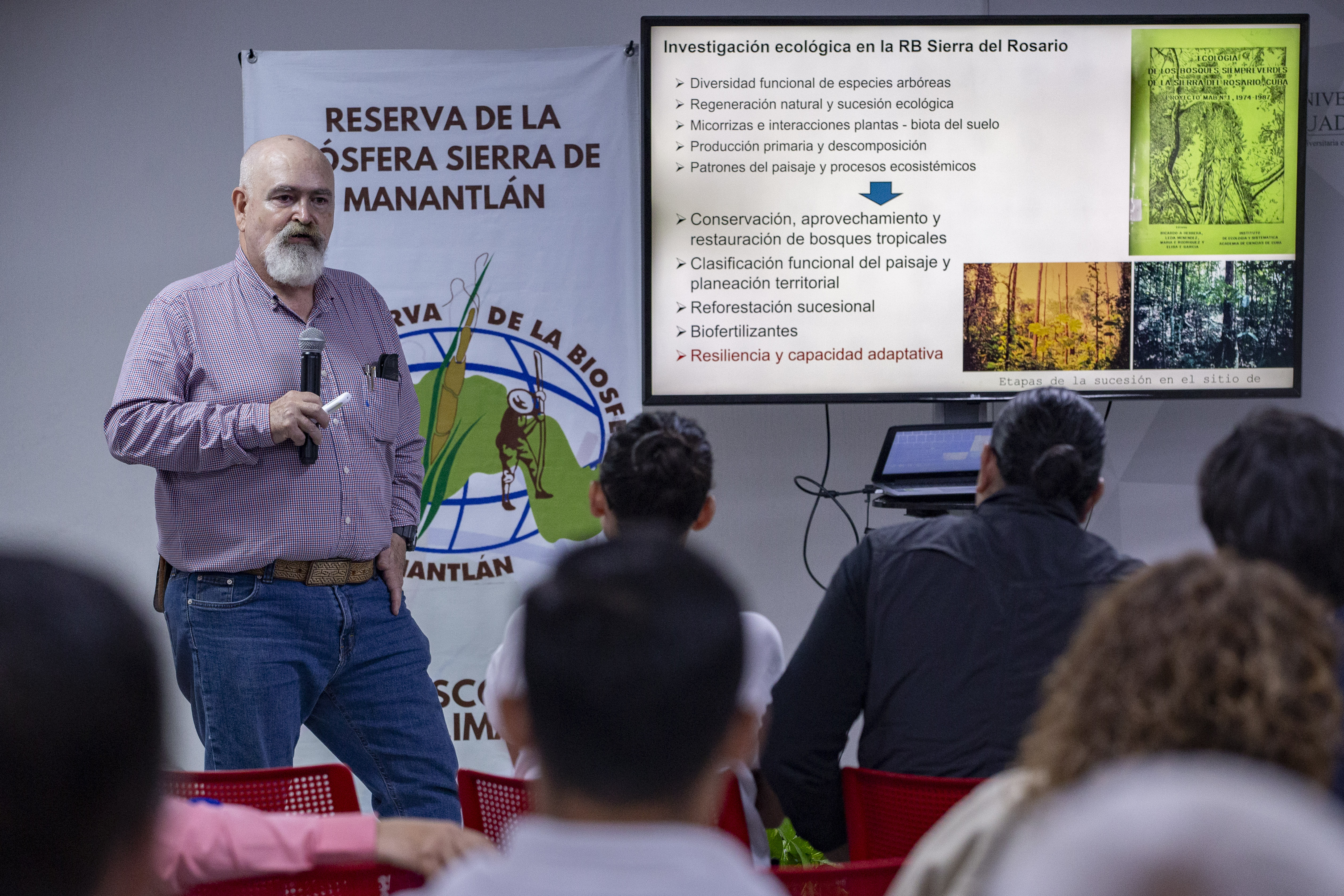 El académico del Centro Universitario de la Costa Sur, quien fuera el primer jefe de Campo de la Estación Científica Las Joyas, maestro Enrique Jardel Peláez, habló sobre la importancia de las reservas biológicas. “Buscamos abrir la conservación a los seres humanos y proteger los valores de la conservación para una gestión de recursos naturales y del ambiente”, dijo.