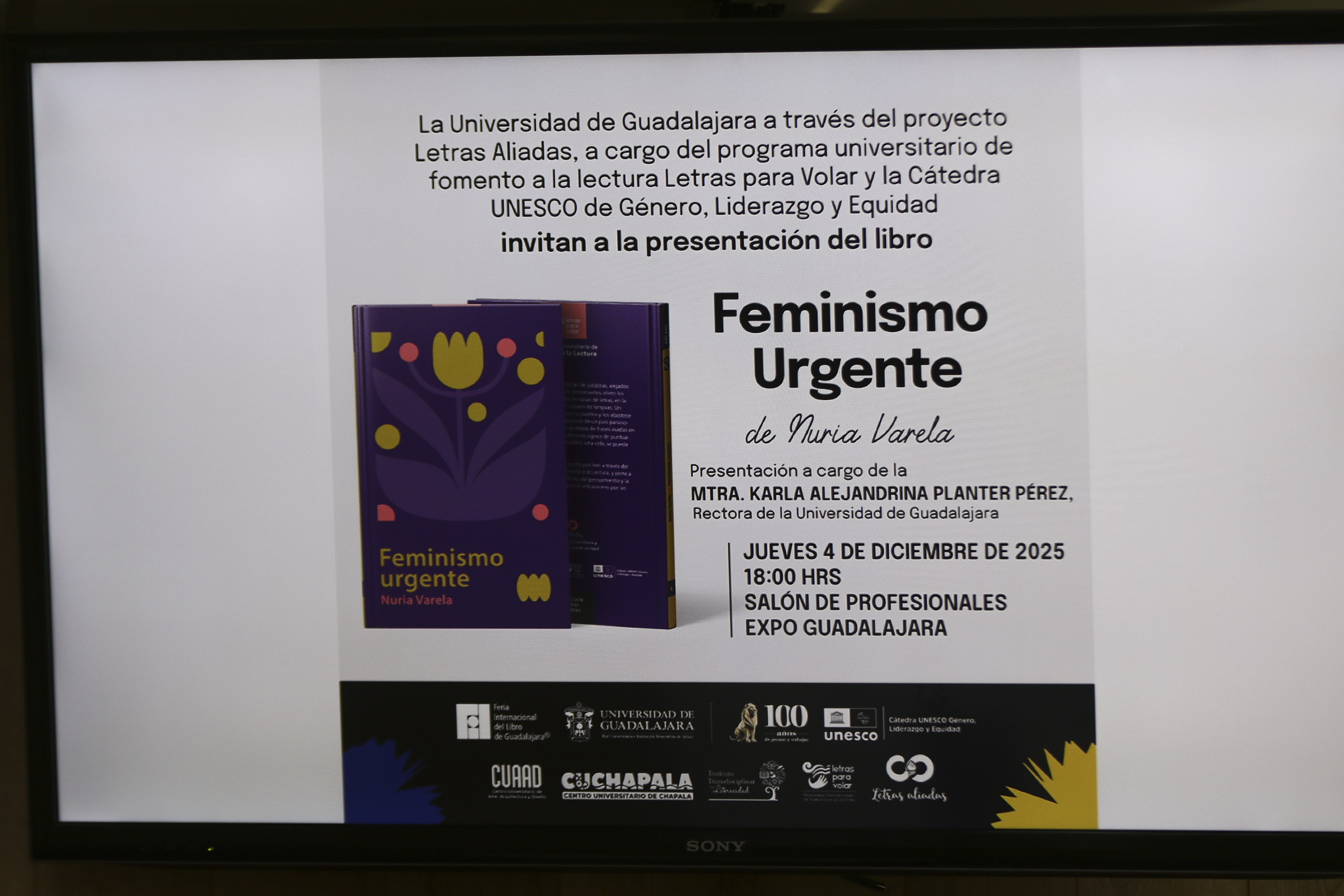 Además, el jueves 4 de diciembre, a las 18:00 horas, en el Salón de Profesionales, presentarán el libro El feminismo urgente, de Nuria Varela, experta en violencia de género y producto de la conferencia que dio en la UdeG como parte de Letras para Volar.